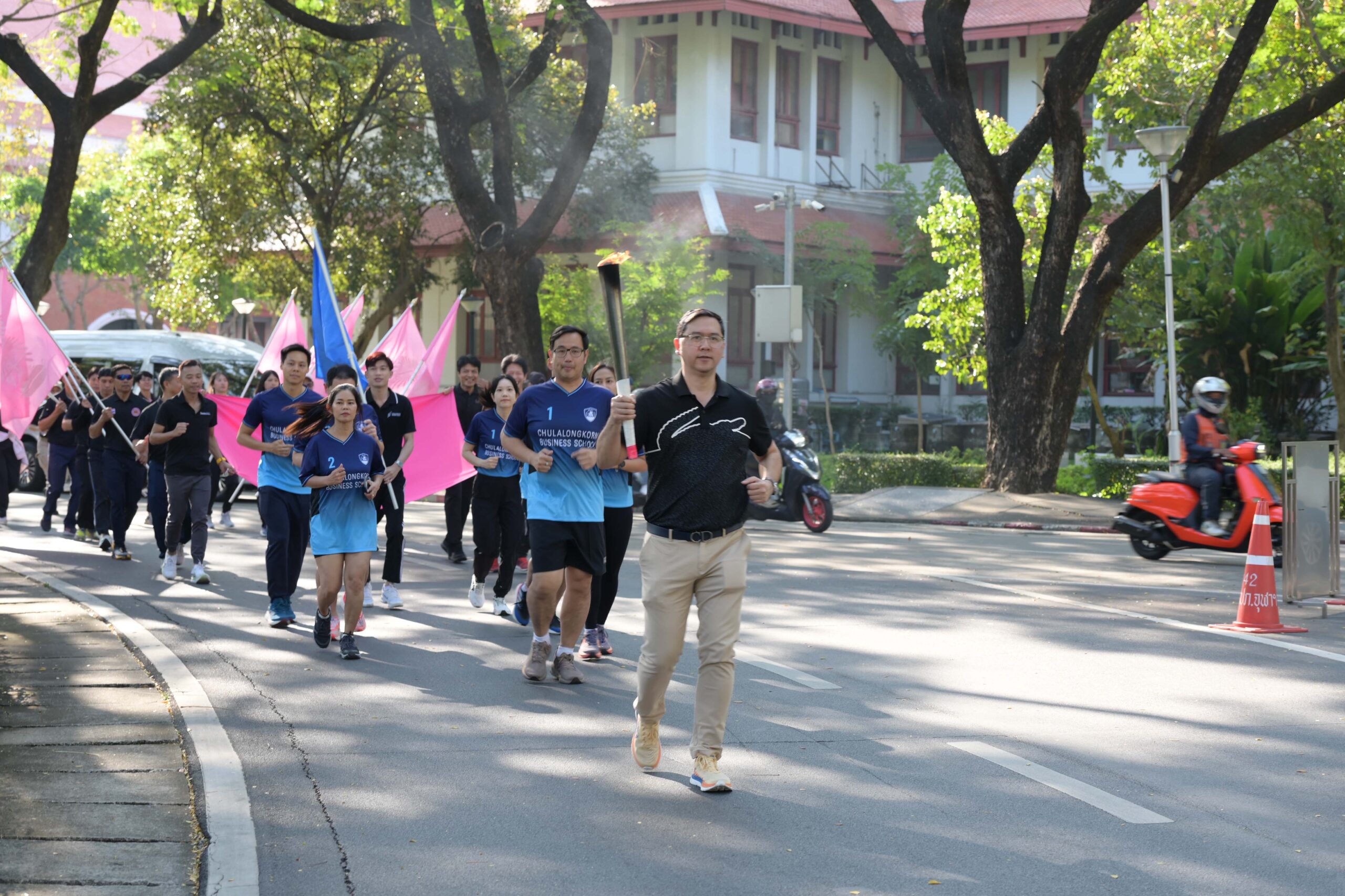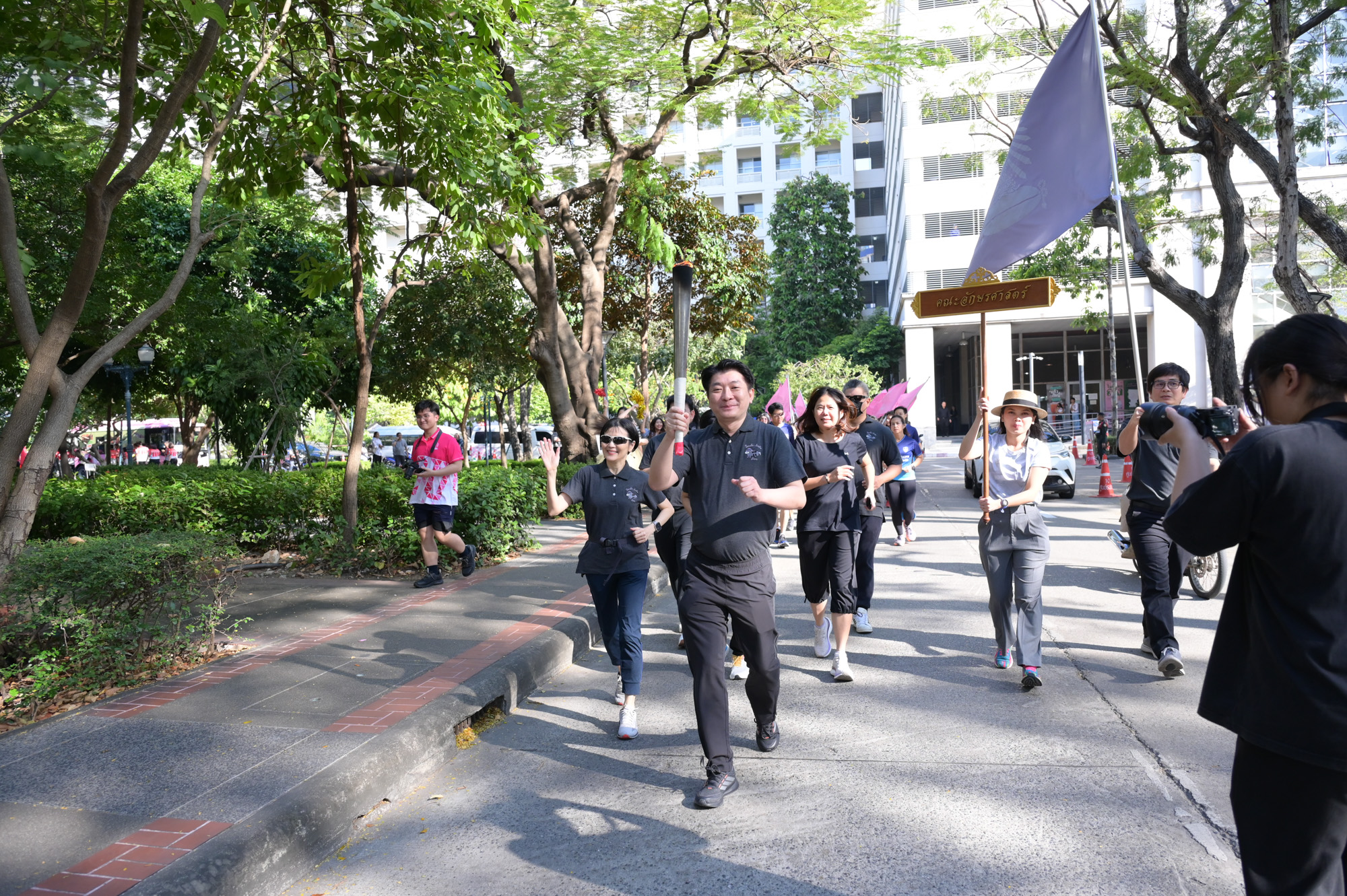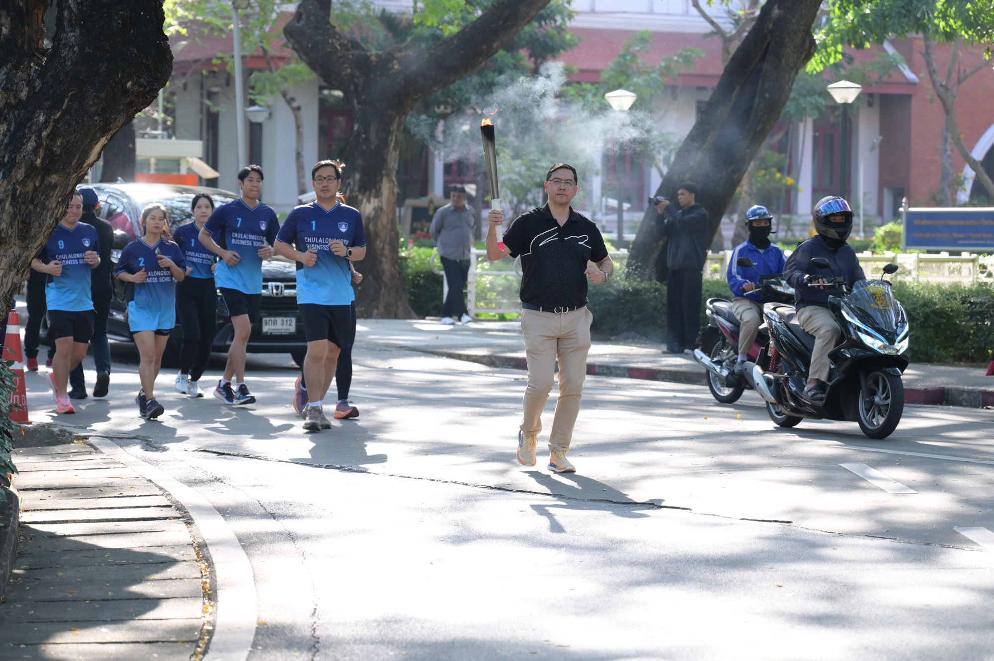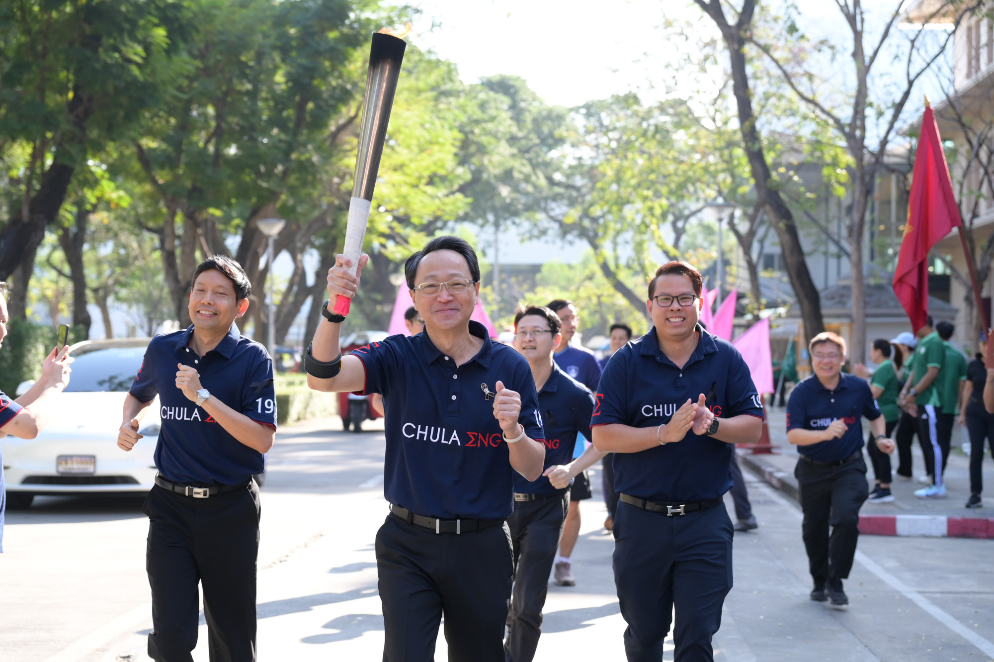 เวลา 09.09 น. อธิการบดีจุฬาฯ เป็นประธานในพิธีจุดไฟฤกษ์จากแสงอาทิตย์ จากนั้นอธิการบดีจุฬาฯ วิ่งนำคบเพลิงจากหน้าพระบรมราชานุสาวรีย์สมเด็จพระปิยมหาราชและสมเด็จพระมหาธีรราชเจ้า ส่งต่อให้ผู้บริหาร คณาจารย์ และผู้แทนส่วนงาน วิ่งผ่านจุดต่าง ๆ ไปยังสนามกีฬาจุฬาฯ ท่ามกลางชาวจุฬาฯ ที่มาร่วมในพิธีอย่างคึกคัก