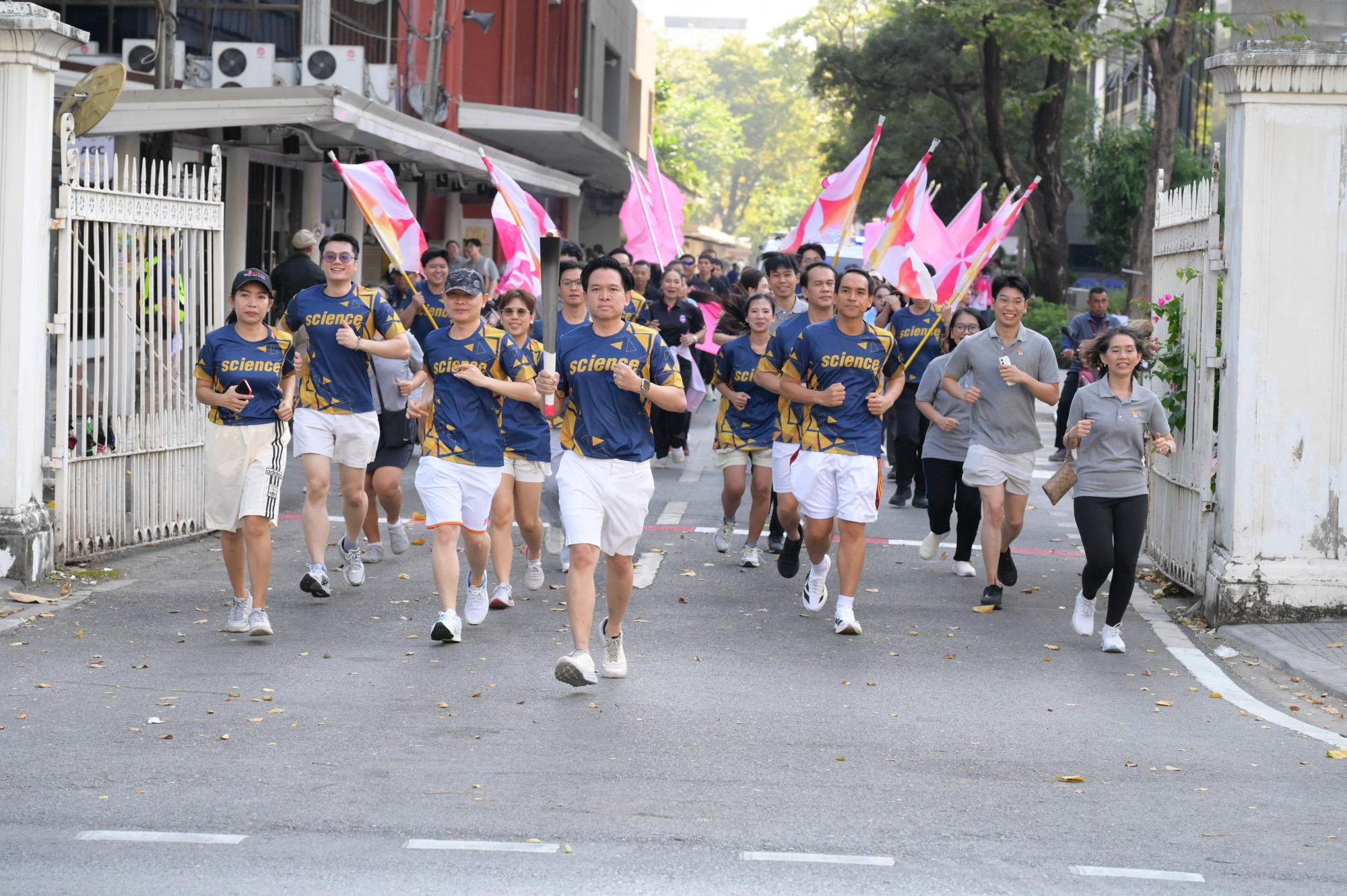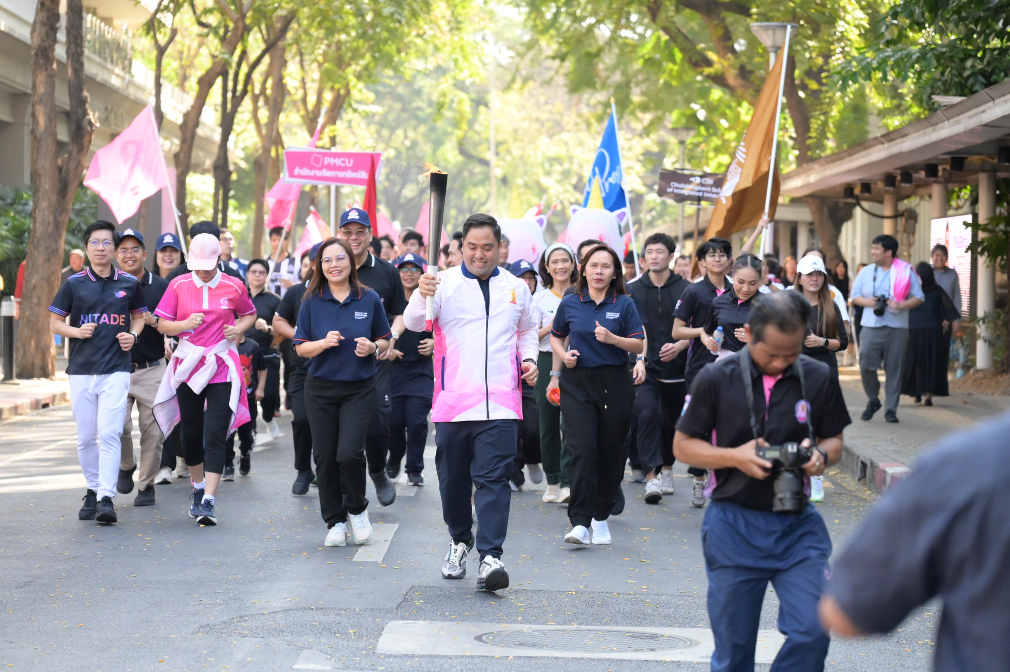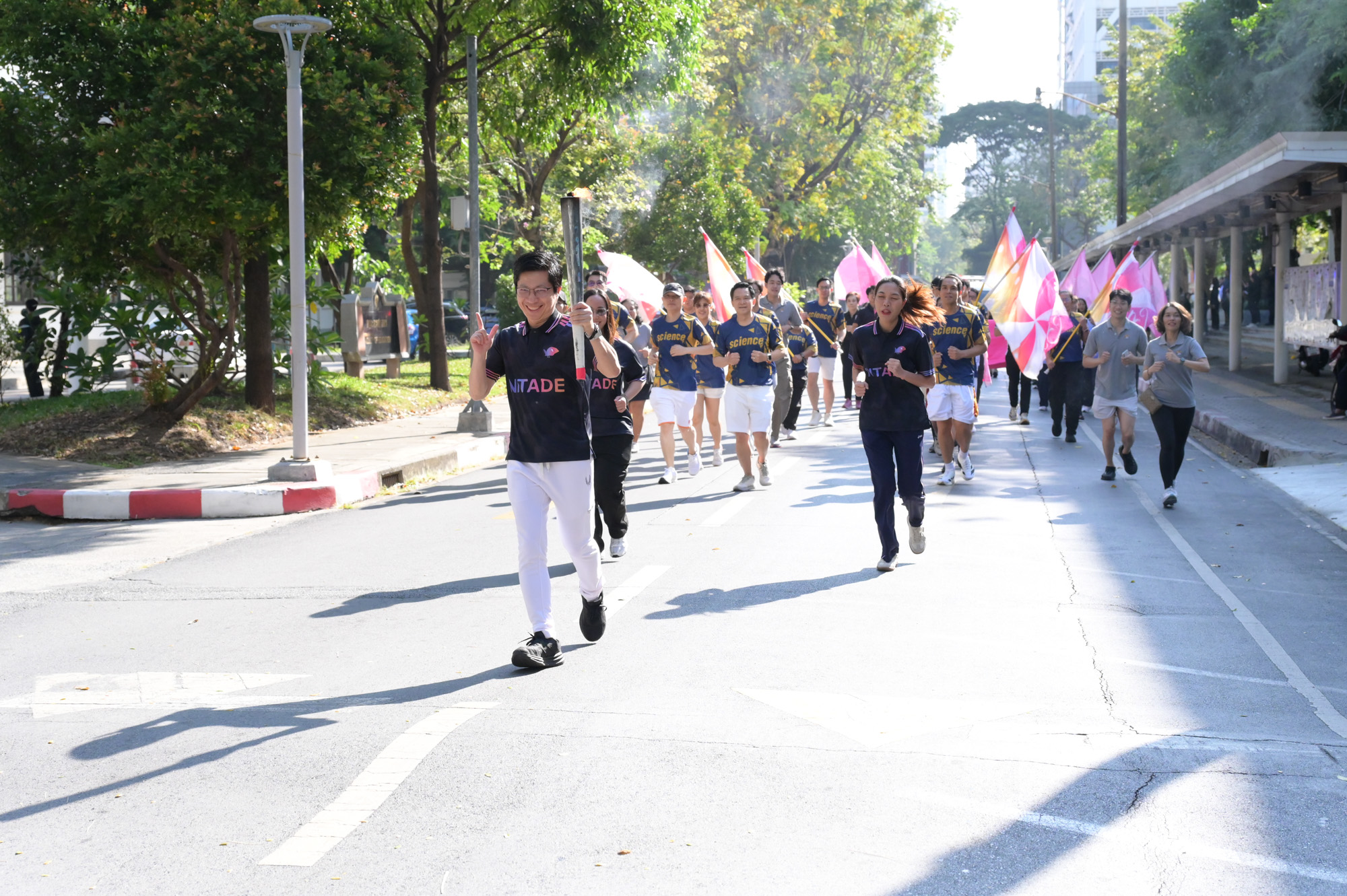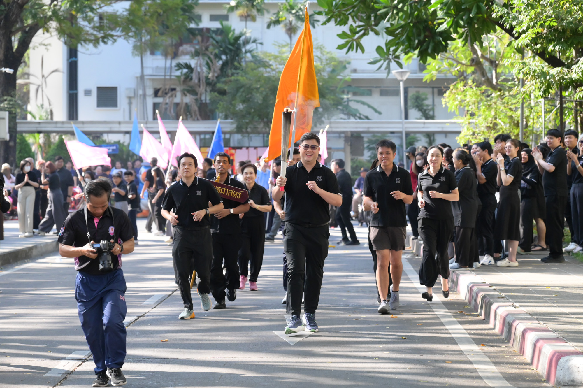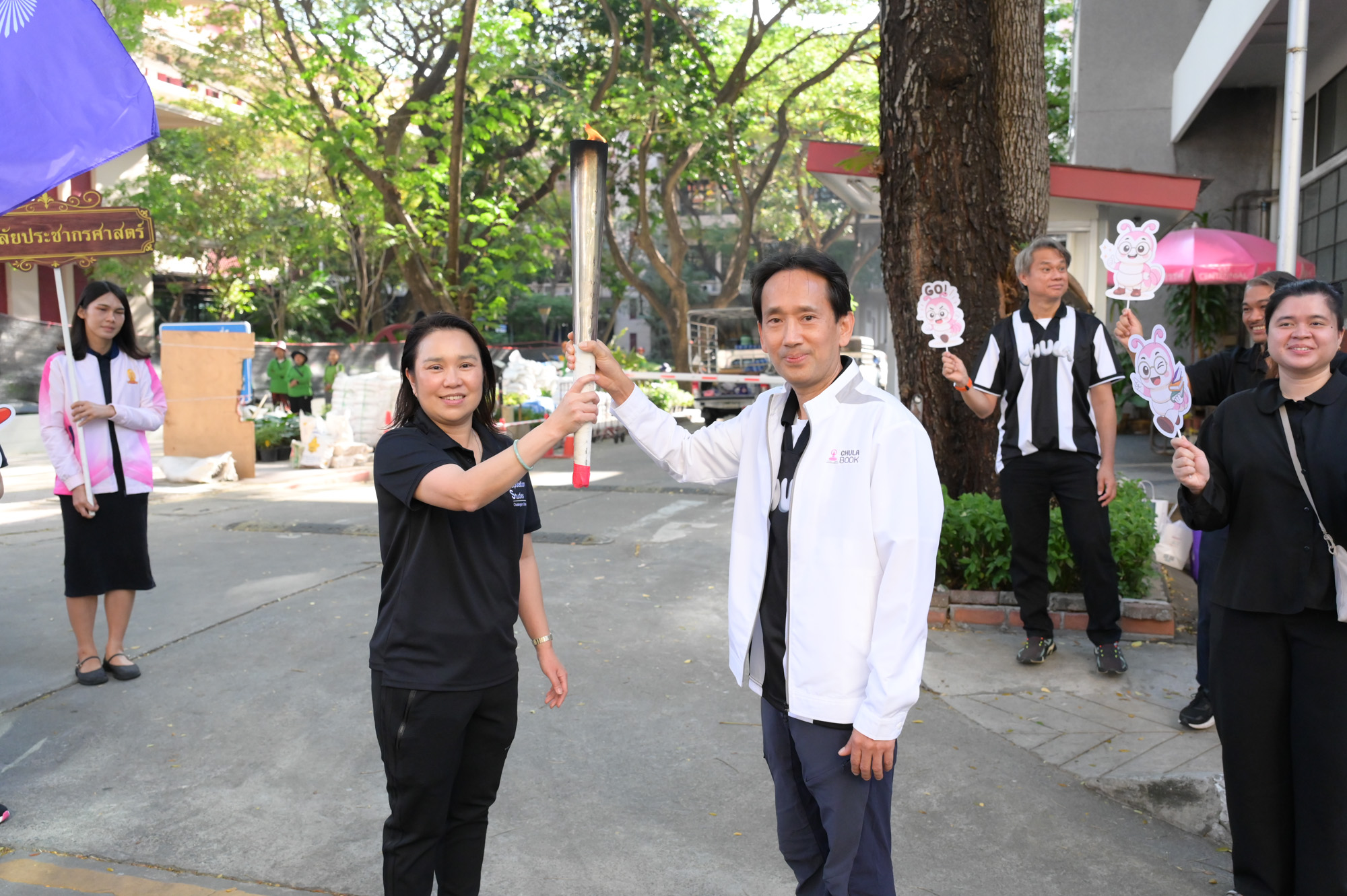 เวลา 09.09 น. อธิการบดีจุฬาฯ เป็นประธานในพิธีจุดไฟฤกษ์จากแสงอาทิตย์ จากนั้นอธิการบดีจุฬาฯ วิ่งนำคบเพลิงจากหน้าพระบรมราชานุสาวรีย์สมเด็จพระปิยมหาราชและสมเด็จพระมหาธีรราชเจ้า ส่งต่อให้ผู้บริหาร คณาจารย์ และผู้แทนส่วนงาน วิ่งผ่านจุดต่าง ๆ ไปยังสนามกีฬาจุฬาฯ ท่ามกลางชาวจุฬาฯ ที่มาร่วมในพิธีอย่างคึกคัก