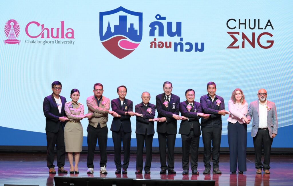 กรุงเทพฯ – 26 มกราคม 2568จุฬาลงกรณ์มหาวิทยาลัย ผนึกกำลังร่วมภาครัฐ เอกชน วิชาการ และผู้เชี่ยวชาญนานาชาติ จัดเวทีเสวนา “กันก่อนท่วม: น้ำแปรปรวน เมืองต้องพร้อม” ณ หอประชุมคณะวิศวกรรมศาสตร์ จุฬาฯ ชี้ทางรอดเมืองไทยเสนอแผน 5 มิติยกระดับการรับมือวิกฤตน้ำของประเทศไทย สู่การ “ป้องกันล่วงหน้า” อย่างเป็นระบบ โดยใช้ข้อมูลชุดเดียวกันทั้งประเทศ วางแผนและสั่งการบนฐานลุ่มน้ำ ไม่แยกส่วนการทำงานตามกรมหรือจังหวัด เชื่อมงบประมาณ นโยบาย และความรับผิดชอบเข้าด้วยกัน พร้อมจัดตั้ง ศูนย์ “กันก่อนท่วม” เป็นกลไกกลางประสานเชื่อมองค์ความรู้ งานวิจัย ข้อมูล และการสื่อสารสาธารณะ เพื่อปกป้องเมืองและอนาคตของคนรุ่นต่อไป