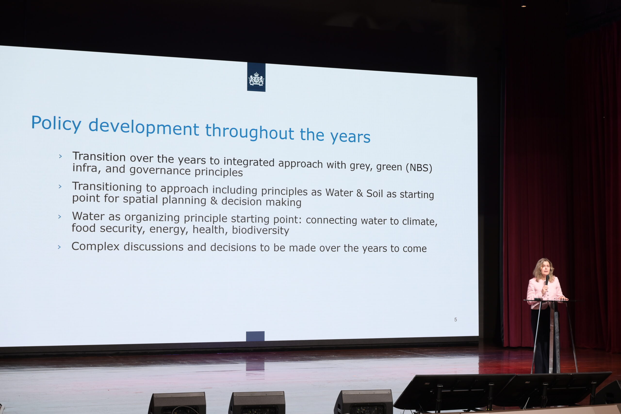 มิติที่ 4: การปรับตัวอยู่ร่วมกับน้ำ (Adaptive Strategy)เปลี่ยนกระบวนทัศน์จากการ “ต่อสู้กับน้ำ” สู่การ “อยู่กับน้ำ” ภายใต้การเปลี่ยนแปลงสภาพภูมิอากาศผ่านโครงสร้างพื้นฐานสีฟ้า-เขียว การวางผังเมืองแบบยืดหยุ่น และการเสริมสร้างความรอบรู้ด้านสภาพภูมิอากาศให้กับประชาชน