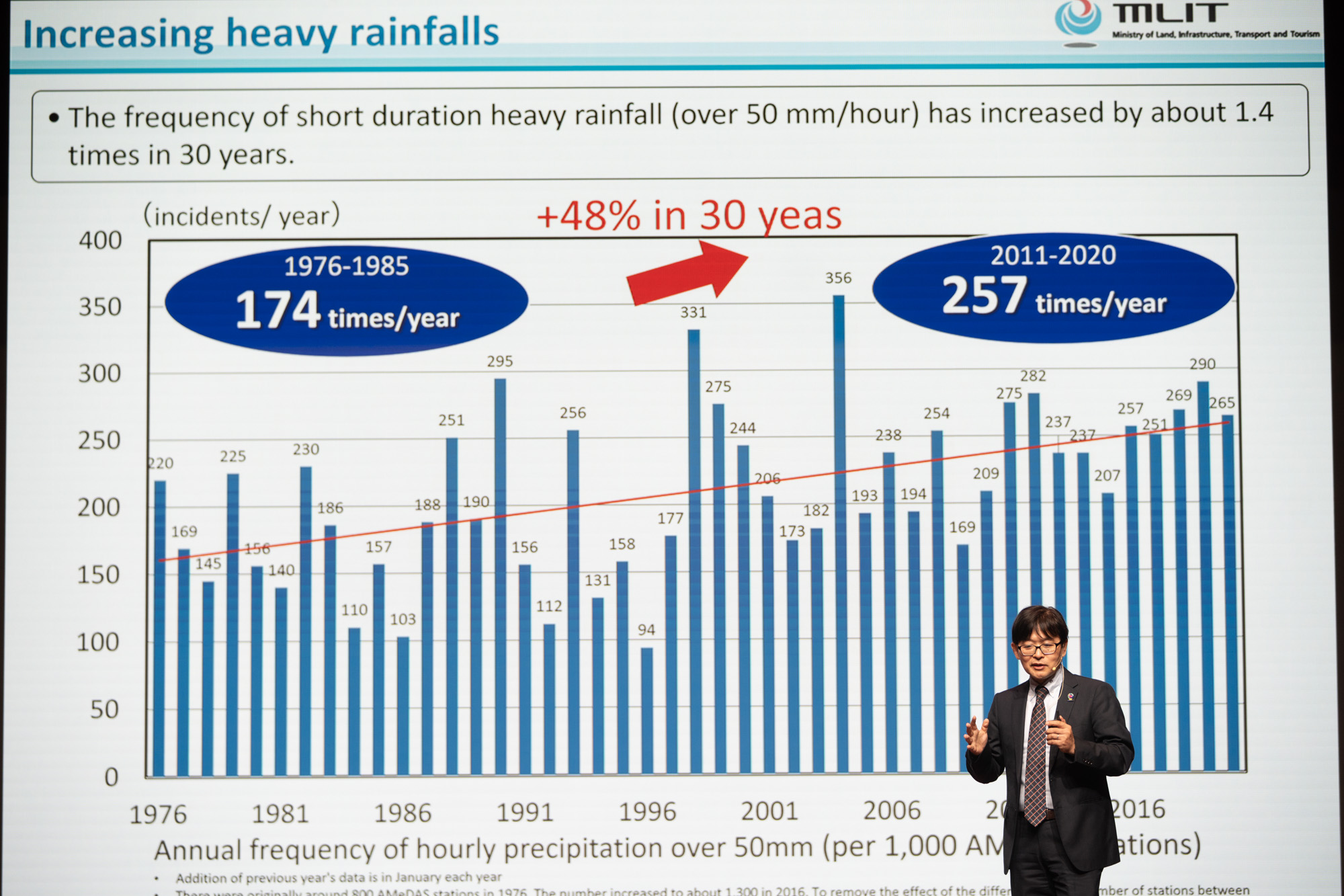 รศ.ดร.วิทยา วัณณสุโภประสิทธิ์ คณบดี คณะวิศวกรรมศาสตร์ จุฬาลงกรณ์มหาวิทยาลัย เปิดเผยว่าประเทศไทยกำลังเผชิญกับรูปแบบสภาพอากาศที่เปลี่ยนแปลงไปอย่างรุนแรง ทั้งจาก “น้ำเหนือ”“น้ำทะเลหนุน” ประกอบกับสภาวะ “ฝนสุดขั้ว” และ”ฝนแช่” เช่น ในพื้นที่หาดใหญ่ทำให้ปริมาณฝนถึง 80% ของฝนทั้งปี ตกลงมาในพื้นที่เดียวภายในระยะเวลาเพียง 1 สัปดาห์ สร้างความเสี่ยงน้ำท่วมฉับพลันอย่างไม่เคยเกิดขึ้นมาก่อน ซึ่งส่งผลกระทบเป็นวงกว้าง ทั้งในมิติเศรษฐกิจและคุณภาพชีวิตของประชาชน เห็นได้จากมูลค่าความสูญเสียและเสียหายของมหาอุทกภัยปี 2554 สูงถึง 1.43 ล้านล้านบาท คิดเป็น 70% ของงบประมาณแผ่นดินในปีดังกล่าว โดยผลกระทบกว่า 90% เกิดขึ้นกับภาคเอกชน ทั้งในรูปของความเสียหายและการสูญเสียโอกาสทางธุรกิจ