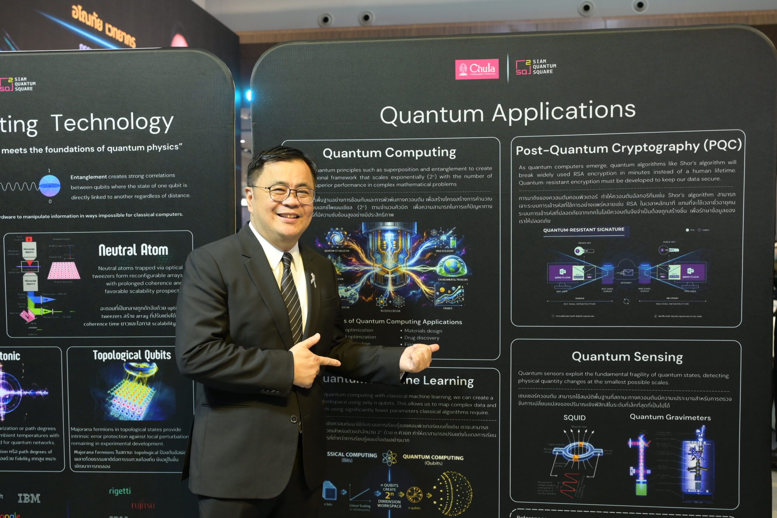 ศ.ดร.ประณัฐ โพธิยะราช คณบดีคณะวิทยาศาสตร์ จุฬาฯ กล่าวว่า “เทคโนโลยีควอนตัม คือการควบคุมสมบัติและสถานะของอนุภาคตามหลักกลศาสตร์ควอนตัม เพื่อนำไปพัฒนานวัตกรรมที่เกิดประโยชน์ ต่อเศรษฐกิจ สังคม และเทคโนโลยีใหม่ ๆ ซึ่งปัจจุบันหลักการทางควอนตัมได้เข้ามามีบทบาทและถูกใช้เป็น แกนหลักในเทคโนโลยีที่อยู่รอบ ๆ ตัวเรา อาทิ สมาร์ทโฟน โซลาร์เซลล์ หรือเครื่อง MRI ที่ใช้ในการแพทย์ ดังนั้นเทคโนโลยีควอนตัมไม่ใช่เรื่องไกลตัวอย่างที่หลาย ๆ คนคิด ผนวกกับควอนตัมคอมพิวเตอร์ (Quantum Computers) เป็น เทคโนโลยีขั้นกว่าที่ใช้งานหลักการทางควอนตัมในระดับสูงสุด เพื่อมาใช้คำนวณแก้ปัญหาต่าง ๆ ที่แก้ไม่ได้ด้วยคอมพิวเตอร์ที่มีอยู่ในปัจจุบัน อีกทั้งยังสามารถถอดการเข้ารหัสทางดิจิทัลในปัจจุบันได้ ซึ่งควอนตัมคอมพิวเตอร์กำลังเข้ามามีบทบาทสำคัญ ในการเปลี่ยนโฉมอุตสาหกรรมดิจิทัลและระบบเศรษฐกิจระดับโลก