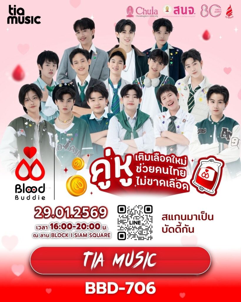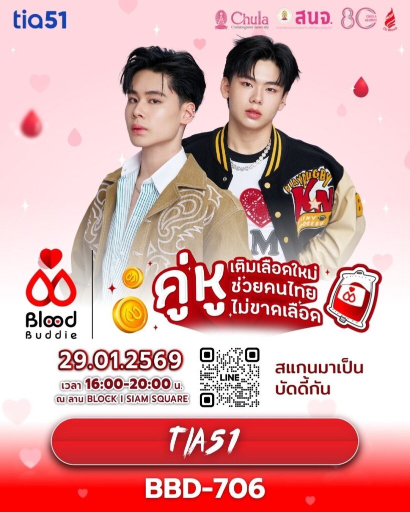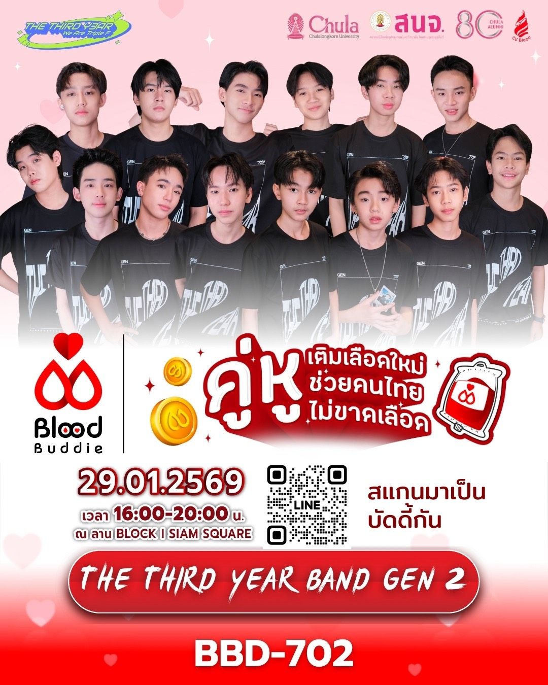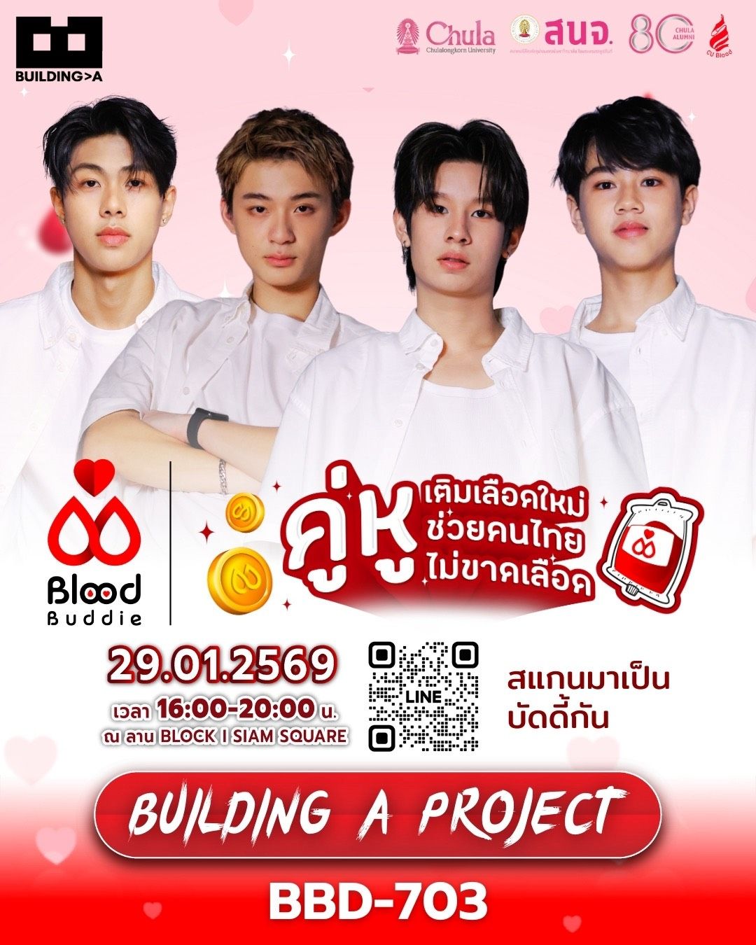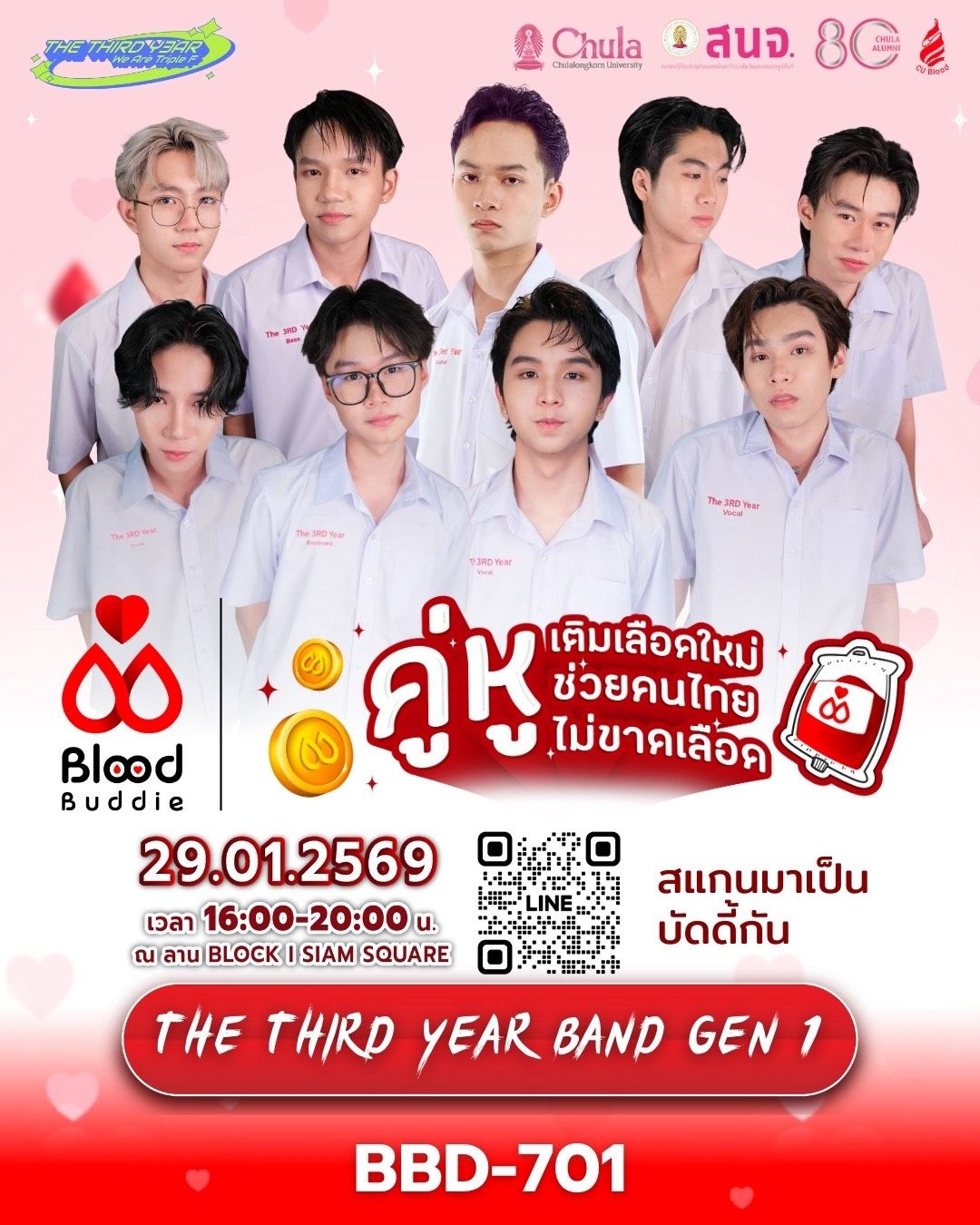จุฬาลงกรณ์มหาวิทยาลัย ร่วมกับแพลตฟอร์ม Blood Buddie จัดกิจกรรม “Blood Buddie คู่หูเติมเลือดใหม่ ช่วยคนไทย ไม่ขาดเลือด” เพื่อรณรงค์ให้คนรุ่นใหม่ตระหนักถึงความสำคัญของการบริจาคโลหิต และร่วมเป็นส่วนหนึ่งในการเสริมสร้างคลังโลหิตให้เพียงพอต่อความต้องการของประเทศ โดยกิจกรรมจะจัดขึ้นในวันพฤหัสบดีที่ 29 มกราคม 2569 ณ ลานบล็อคไอ สยามสแควร์ ตั้งแต่เวลา 13.00–16.00 น. (เริ่มลงทะเบียนตั้งแต่เวลา 12.00 น.)