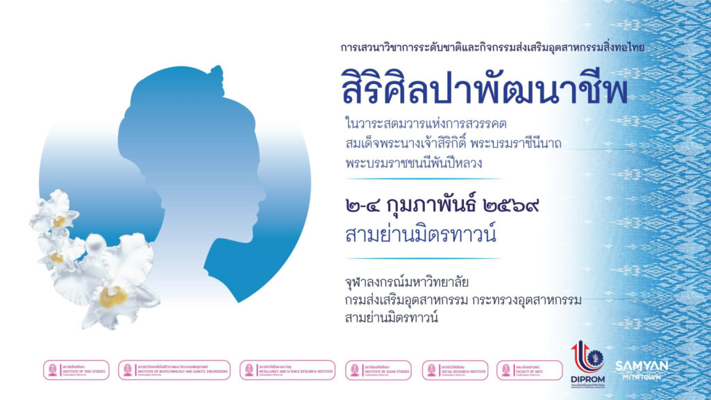 จุฬาลงกรณ์มหาวิทยาลัย โดยสถาบันไทยศึกษา สถาบันวิจัยเทคโนโลยีชีวภาพและวิศวกรรมพันธุศาสตร์ สถาบันวิจัยโลหะและวัสดุ สถาบันเอเชียศึกษา และคณะอักษรศาสตร์ จุฬาฯ ร่วมกับกรมส่งเสริมอุตสาหกรรม กระทรวงอุตสาหกรรม และสามย่านมิตรทาวน์ จัดงาน “สิริศิลปาพัฒนาชีพ” เนื่องในวาระสตมวารแห่งการสวรรคต สมเด็จพระนางเจ้าสิริกิติ์ พระบรมราชชีนีนาถ พระบรมราชชนนีพันปีหลวง ระหว่างวันที่ 2-4 กุมภาพันธ์ 2569 ณ ลานกิจกรรมในร่ม ชั้น G สามย่านมิตรทาวน์