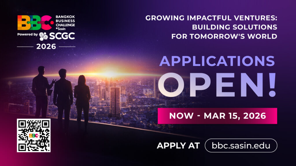 สถาบันบัณฑิตบริหารธุรกิจ ศศินทร์ แห่งจุฬาลงกรณ์มหาวิทยาลัย (Sasin School of Management) ร่วมกับ เอสซีจี เคมิคอลส์ หรือ SCGC ผู้นำธุรกิจพอลิเมอร์และโซลูชันครบวงจรเพื่อความยั่งยืน และพันธมิตร เตรียมเปิดเวทีผลักดันไอเดียธุรกิจของนิสิต–นักศึกษาจากทั่วโลก ผ่านการแข่งขัน Bangkok Business Challenge 2026 เวทีการแข่งขันแผนธุรกิจสำหรับนิสิต-นักศึกษาที่จัดขึ้นอย่างต่อเนื่องและยาวนานที่สุดในเอเชียกว่า 24 ปี พร้อมเปิดโอกาสให้นิสิต–นักศึกษาจากทุกประเทศได้ร่วมแสดงศักยภาพ นำเสนอแนวคิดและไอเดียธุรกิจที่มุ่งสร้างความยั่งยืนให้กับโลกในอนาคต ภายใต้แนวคิด “Growing Impactful Ventures: Building Solutions for Tomorrow’s World” ชิงถ้วยรางวัลเกียรติคุณ พร้อมเงินรางวัลรวมมูลค่าถึง 42,900 ดอลลาร์สหรัฐ