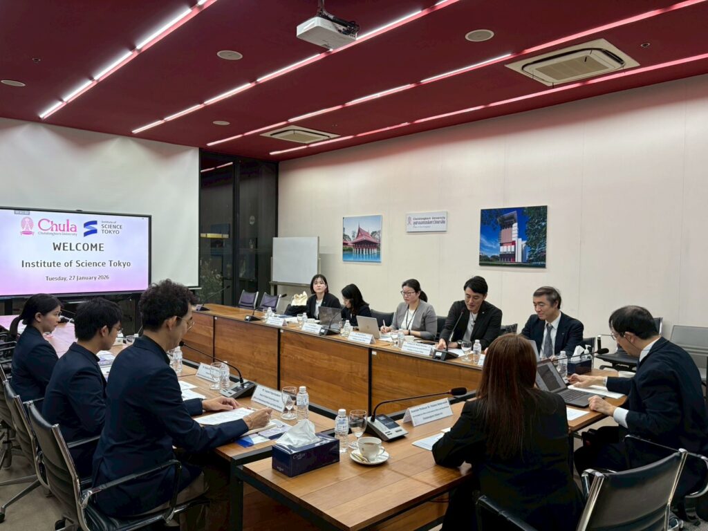 รศ.ดร.ปาลนี อัมรานนท์ รองอธิการบดี ด้านวิรัชกิจและเครือข่ายนานาชาติ จุฬาฯ ให้การต้อนรับ Prof. Dr. Jun-ichi Takada, Executive Vice President for Global Affairs พร้อมด้วยคณะผู้บริหารและผู้แทนจาก Institute of Science Tokyo ประเทศญี่ปุ่น เมื่อวันที่ 27 มกราคม 2569 ณ ชั้น 18 อาคารเฉลิมราชกุมารี 60 พรรษา (อาคารจามจุรี 10)