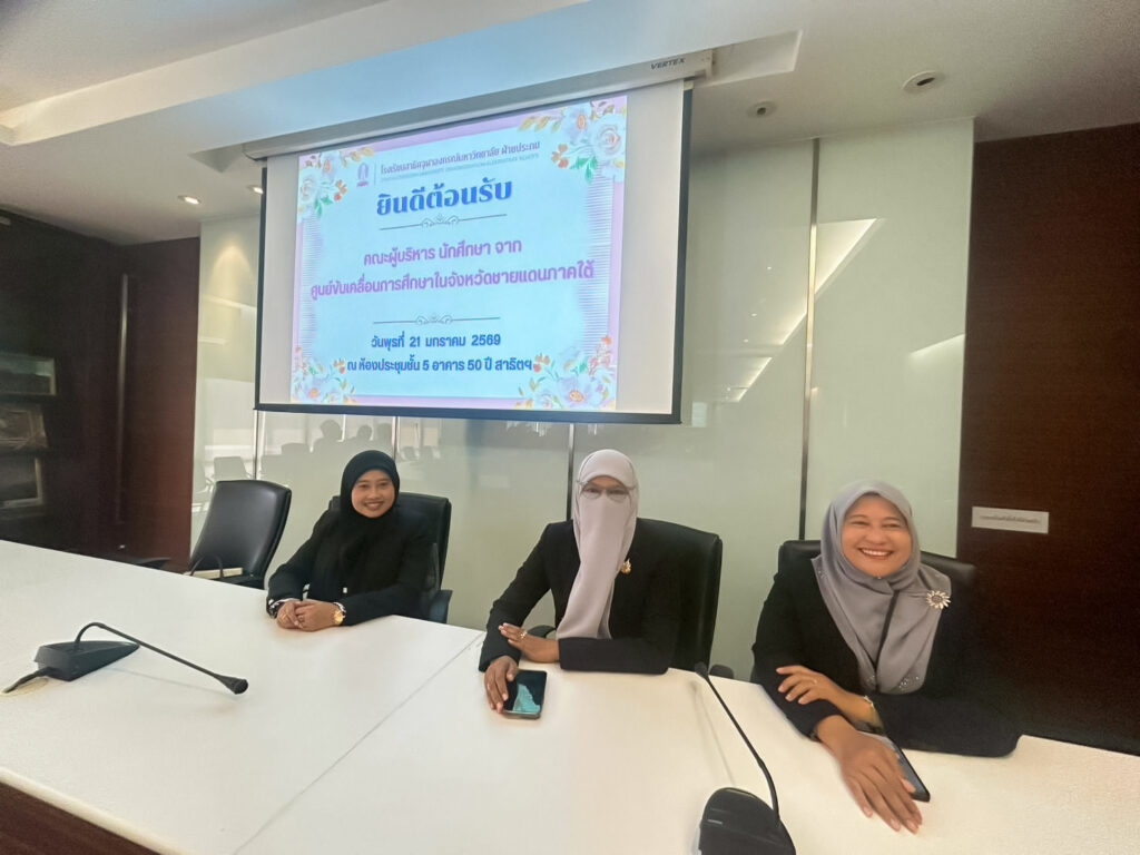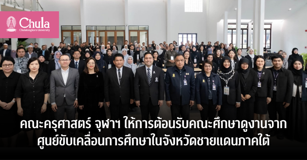 รศ.ดร.ยศวีร์ สายฟ้า คณบดีคณะครุศาสตร์ จุฬาฯ ให้การต้อนรับคณะศึกษาดูงานจากศูนย์ขับเคลื่อนการศึกษาในจังหวัดชายแดนภาคใต้ ในโอกาสเข้าร่วมกิจกรรมศึกษาดูงานและแลกเปลี่ยนประสบการณ์ด้านการบริหารและการจัดการศึกษา เมื่อวันพุธที่ 21 มกราคม 2569 โดยมี รศ.ดร.เฟื่องอรุณ ปรีดีดิลก หัวหน้าภาควิชานโยบาย การจัดการและความเป็นผู้นำทางการศึกษา คณะครุศาสตร์ จุฬาฯ พร้อมคณาจารย์ให้การต้อนรับ