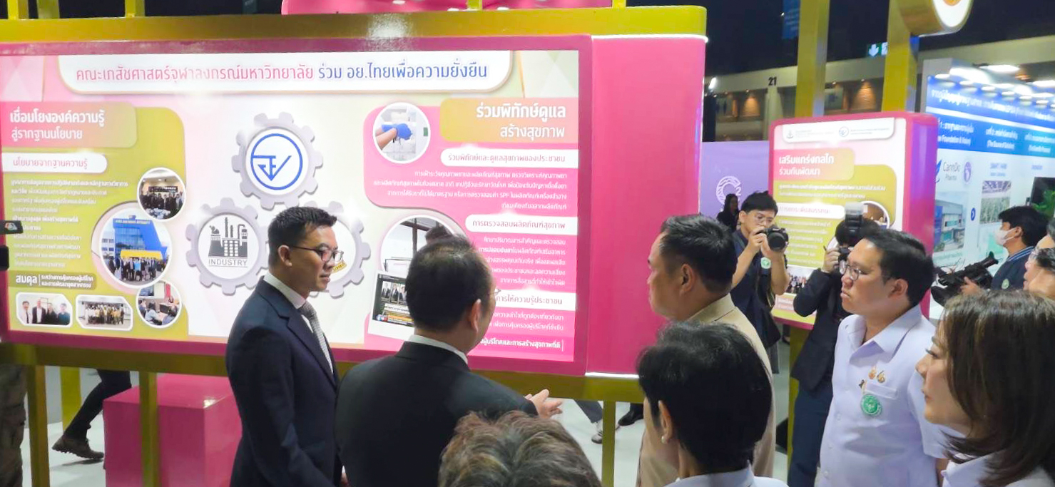 คณะเภสัชศาสตร์ จุฬาลงกรณ์มหาวิทยาลัย ร่วมกับบริษัท จุฬาฟาร์เทค จำกัด จัดแสดงนิทรรศการในงานมหกรรมผลิตภัณฑ์สุขภาพระดับประเทศ ประจำปี 2569 หรือ มหกรรม อย. EXPO 2026 “From Local to Global” ระหว่างวันที่ 23–25 มกราคม 2569 ณ อาคารชาเลนเจอร์ 2 อิมแพ็ค เมืองทองธานี โดยมีนายอนุทิน ชาญวีรกูล นายกรัฐมนตรี เป็นประธานเปิดงาน นายพัฒนา พร้อมพัฒน์ รัฐมนตรีว่าการกระทรวงสาธารณสุข พร้อมด้วย ภญ.สุภัทรา บุญเสริม เลขาธิการคณะกรรมการอาหารและยา (อย.) ให้การต้อนรับ โดยนายกรัฐมนตรีและคณะได้เยี่ยมชมนิทรรศการและบูธของคณะเภสัชศาสตร์ จุฬาฯ จัดแสดงข้อมูลความร่วมมือระหว่างคณะฯ กับสำนักงานคณะกรรมการอาหารและยา (อย.) ตลอดจนผลงานวิจัยและผลิตภัณฑ์นวัตกรรมด้านยา อาหาร และผลิตภัณฑ์สุขภาพที่พัฒนาขึ้นโดยคณะเภสัชศาสตร์ จุฬาฯ จากองค์ความรู้ทางวิชาการและการต่อยอดเชิงอุตสาหกรรม เพื่อสนับสนุนระบบสุขภาพของประเทศ