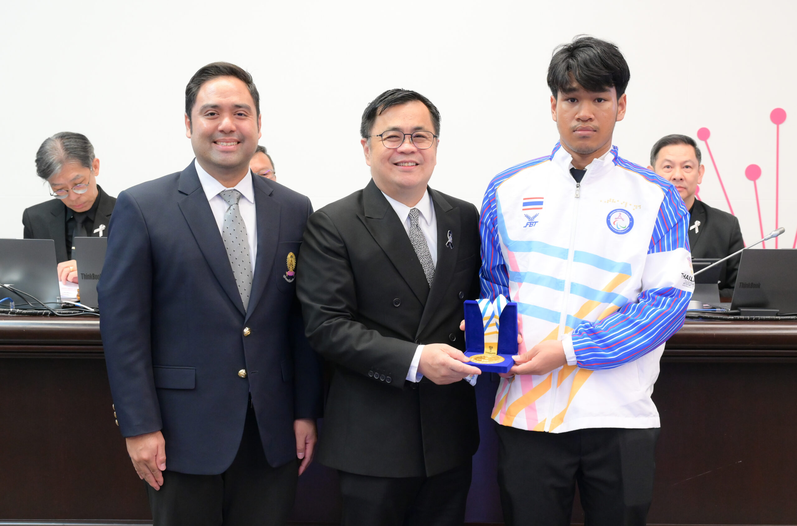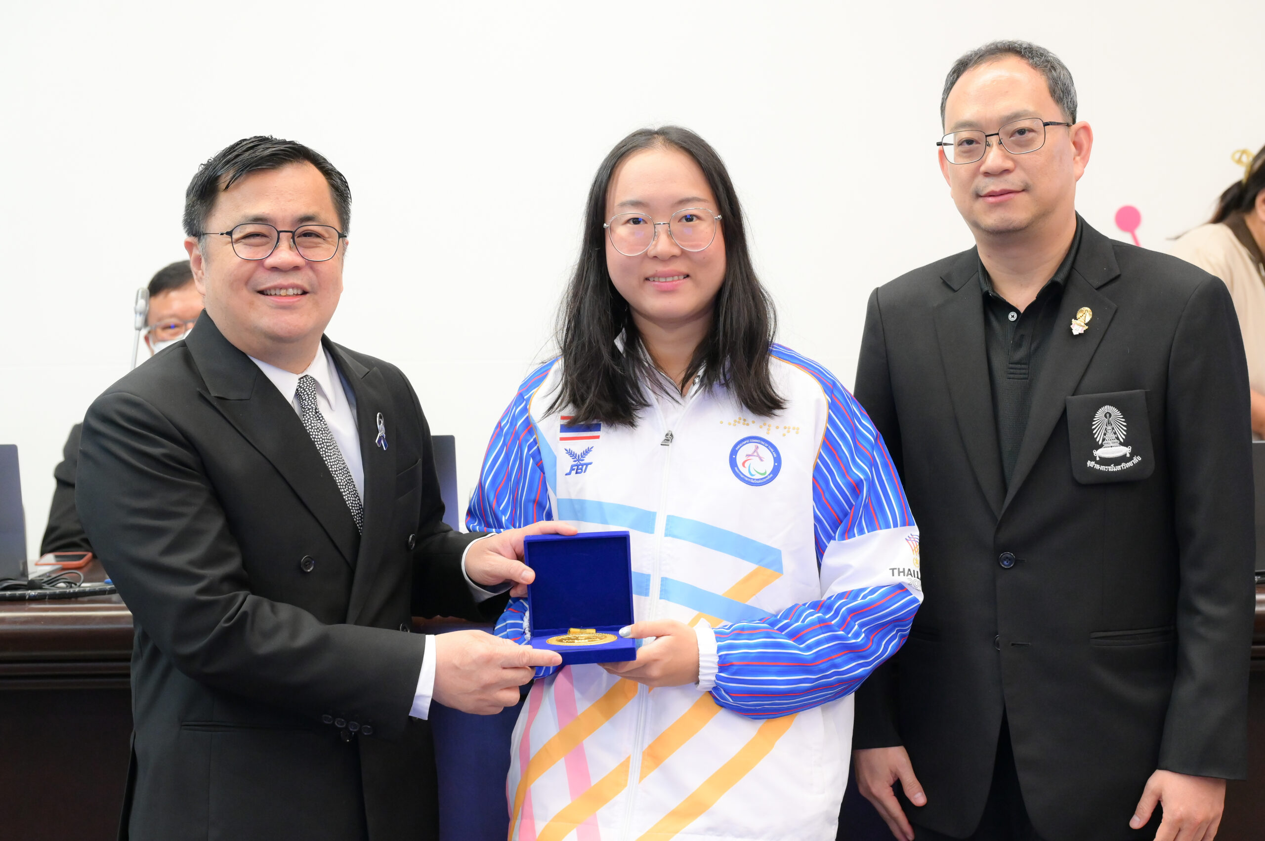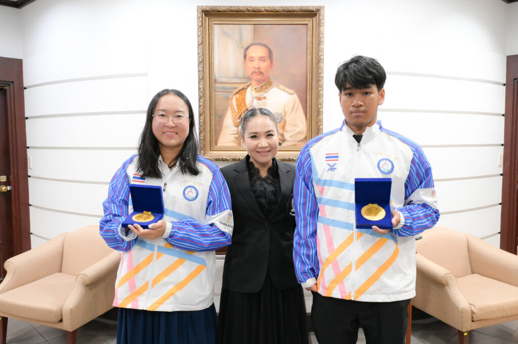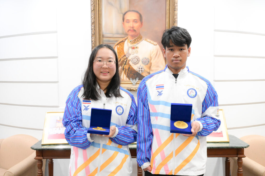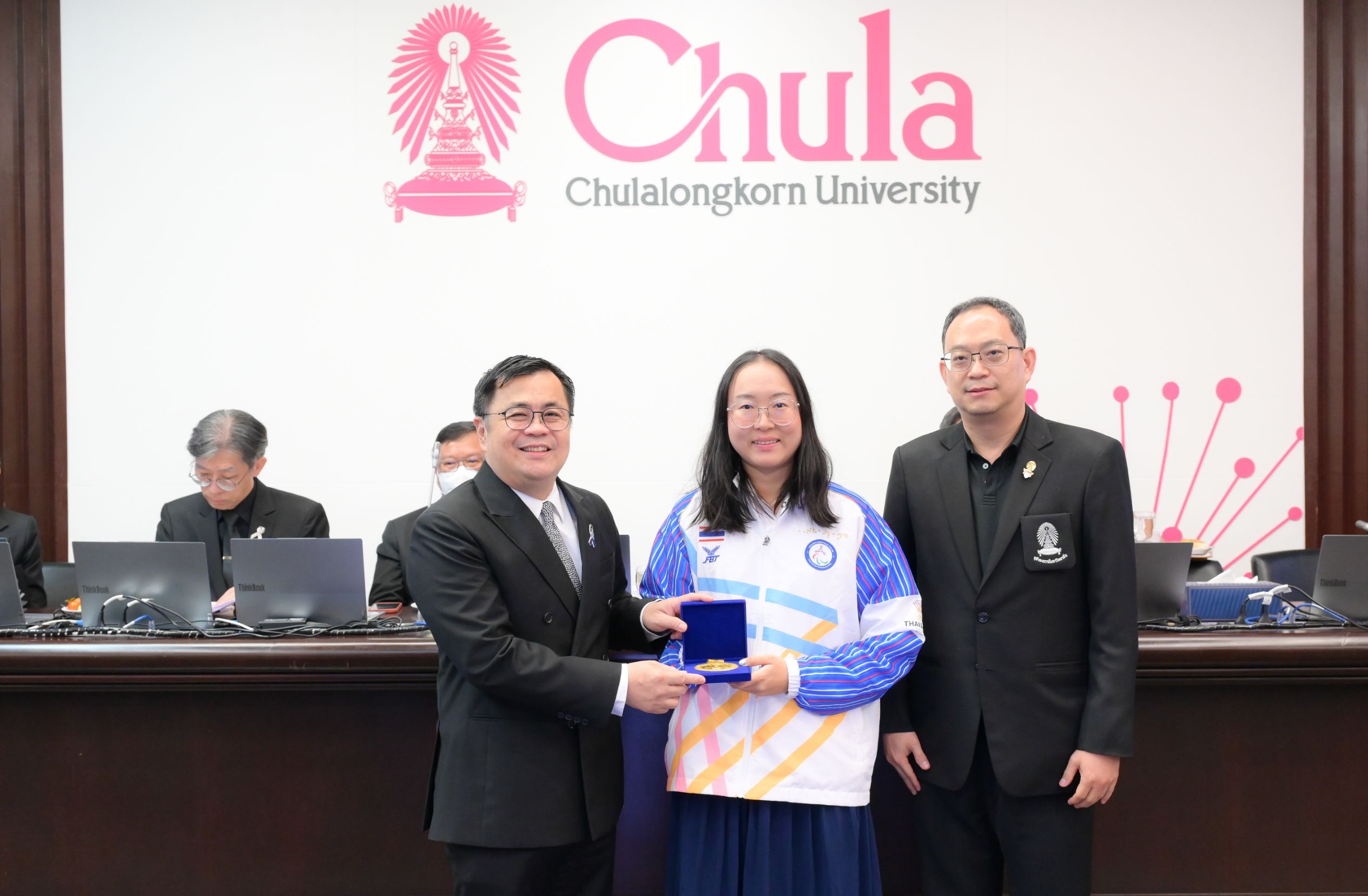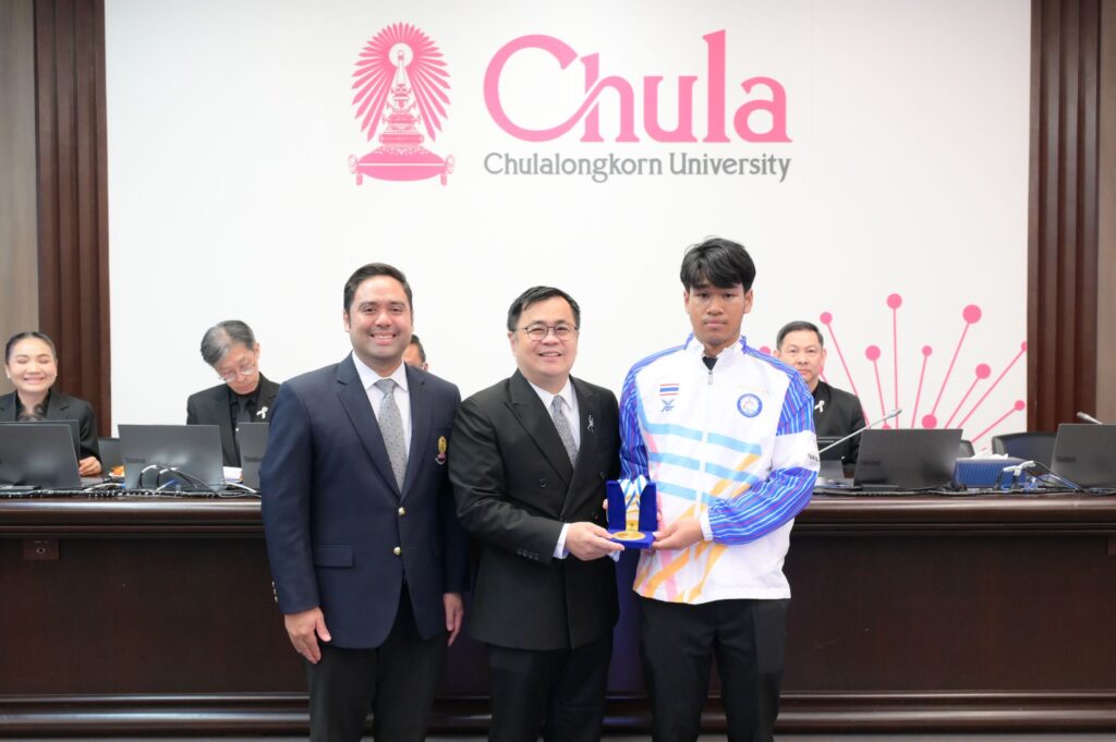 ที่ประชุมคณบดีเมื่อวันพุธที่ 11 กุมภาพันธ์ 2568 ณ ห้อง 202 อาคารจามจุรี 4 ศ.ดร.วิเลิศ ภูริวัชร อธิการบดี จุฬาฯ และ รศ.ดร.สุกัญญา สมไพบูลย์ รองอธิการบดีจุฬาฯ พร้อมด้วยคณะผู้บริหารมหาวิทยาลัย ผู้บริหารคณะ สถาบัน และหน่วยงานต่าง ๆ ได้ร่วมแสดงความยินดีกับนางสาวอัญชญา เกตุเเก้ว นิสิตชั้นปีที่ 4 คณะวิทยาศาสตร์การกีฬา คว้า 6 เหรียญทอง และนายสัมปชัญญ์ สมาธิ นิสิตชั้นปีที่ 1 คณะครุศาสตร์ คว้า 4 เหรียญทอง 3 เหรียญเงิน