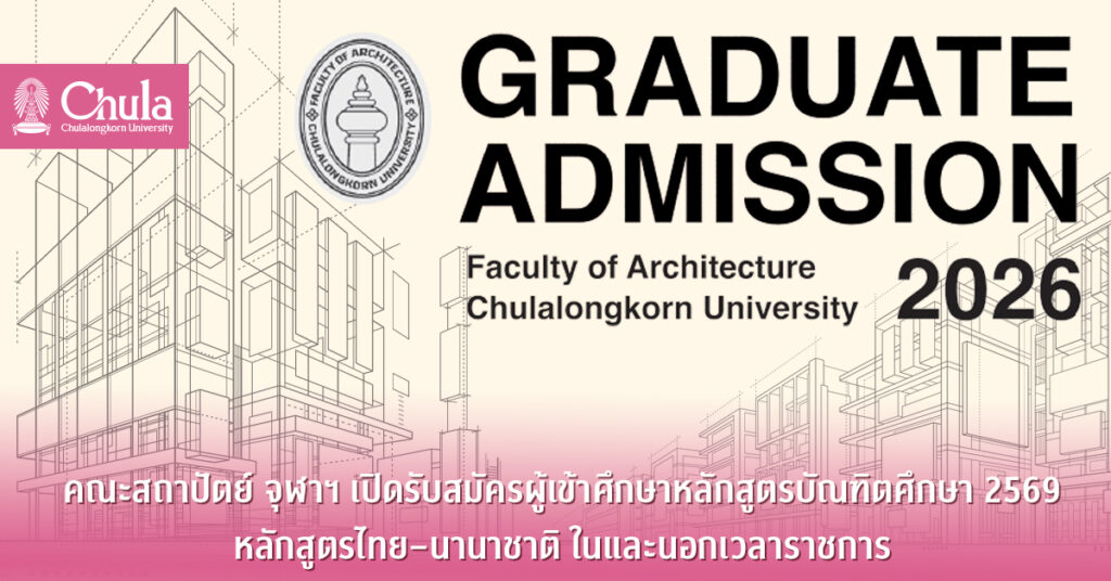 คณะสถาปัตย์ จุฬาฯ เปิดรับสมัครผู้เข้าศึกษาหลักสูตรบัณฑิตศึกษา 2569 หลักสูตรไทย–นานาชาติ ในและนอกเวลาราชการ