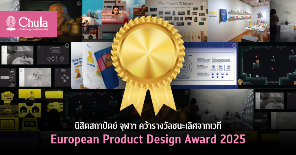จุฬาลงกรณ์มหาวิทยาลัยขอแสดงความยินดีอย่างยิ่งกับนิสิตคณะสถาปัตยกรรมศาสตร์ จุฬาฯ หลักสูตรศิลปกรรมศาสตรบัณฑิตและหลักสูตรศิลปกรรมศาสตรมหาบัณฑิต สาขาวิชาการออกแบบนิเทศศิลป์ หลักสูตรนานาชาติ (หลักสูตร CommDe และ CommMA) คว้ารางวัลชนะเลิศระดับนานาชาติประเภทนิสิตนักศึกษา จากเวที European Product Design Award (EPDA) ประจำปี 2025 พิธีมอบรางวัลจะจัดขึ้น ณ เมืองเวนิส สาธารณรัฐอิตาลี ในวันที่ 18 ตุลาคม 2569