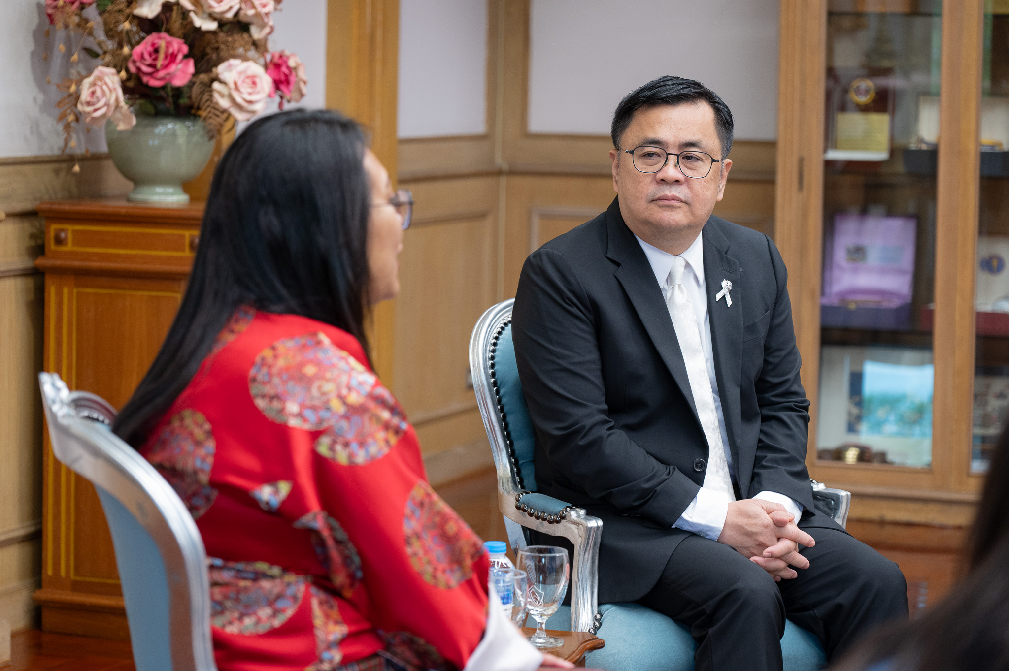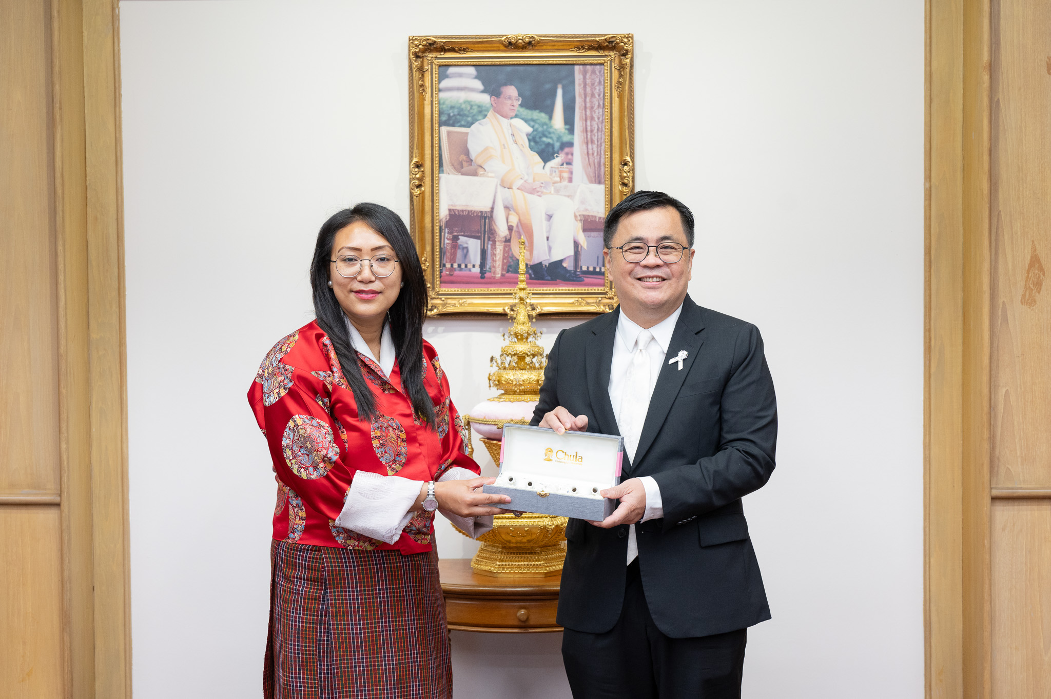 ศ.ดร.วิเลิศ ภูริวัชร อธิการบดีจุฬาฯ ให้การต้อนรับ Her Excellency Yeezang De Thapa, Minister of Education and Skills Development แห่งราชอาณาจักรภูฏาน พร้อมคณะผู้แทนจากกระทรวงศึกษาธิการและการพัฒนาทักษะ และสถานเอกอัครราชทูตราชอาณาจักรภูฏานประจำประเทศไทย ในโอกาสเดินทางมาเยือนจุฬาลงกรณ์มหาวิทยาลัยเมื่อวันที่ 16 กุมภาพันธ์ 2569 ณ ห้องรับรอง ชั้น 2 อาคารจามจุรี 4 เพื่อแลกเปลี่ยนความคิดเห็น มุ่งเน้นแนวทางความร่วมมือในแนวทางการจัดการศึกษาที่บูรณาการ 4 ศาสตร์วิชาหลัก (STEM) ได้แก่ วิทยาศาสตร์ เทคโนโลยี วิศวกรรมศาสตร์ และคณิตศาสตร์ เข้าด้วยกัน และหลักสูตรด้านศิลปกรรมศาสตร์ ซึ่งสอดคล้องกับเป้าหมายร่วมกันด้านการศึกษาและการพัฒนาทักษะ