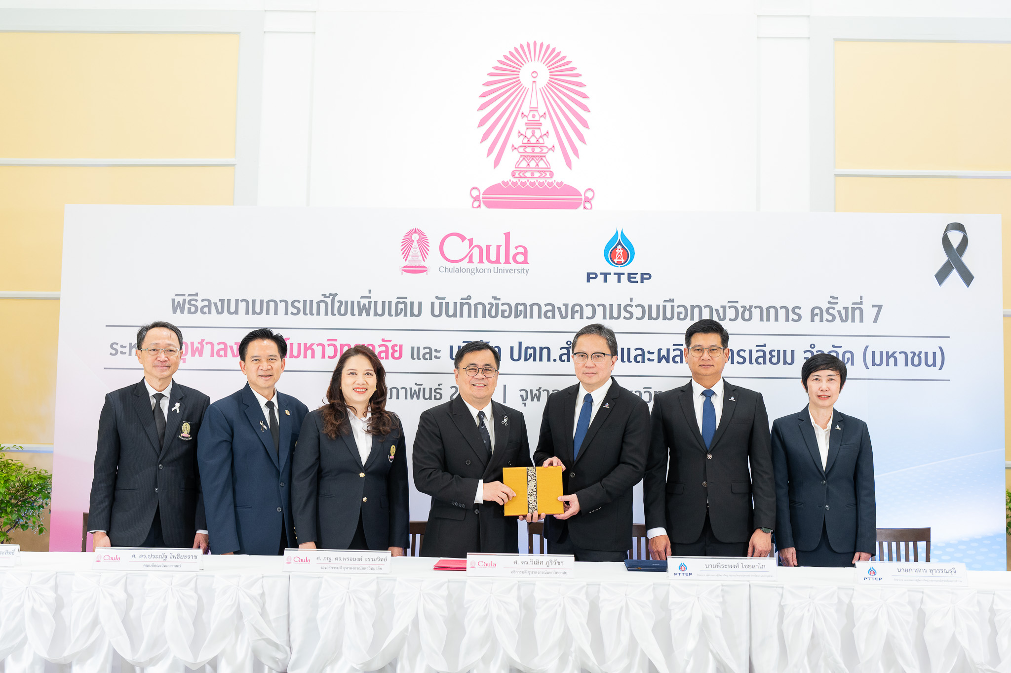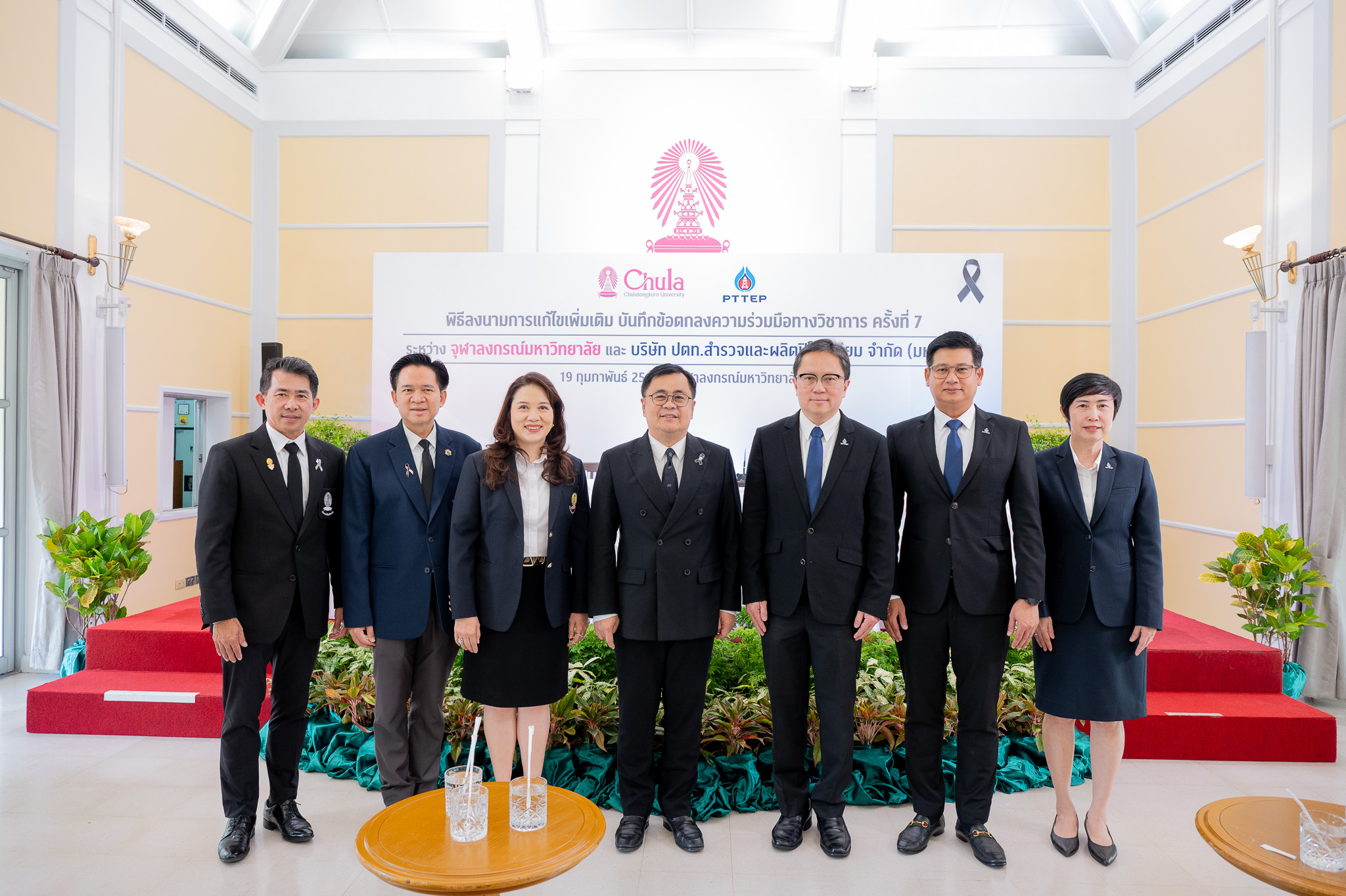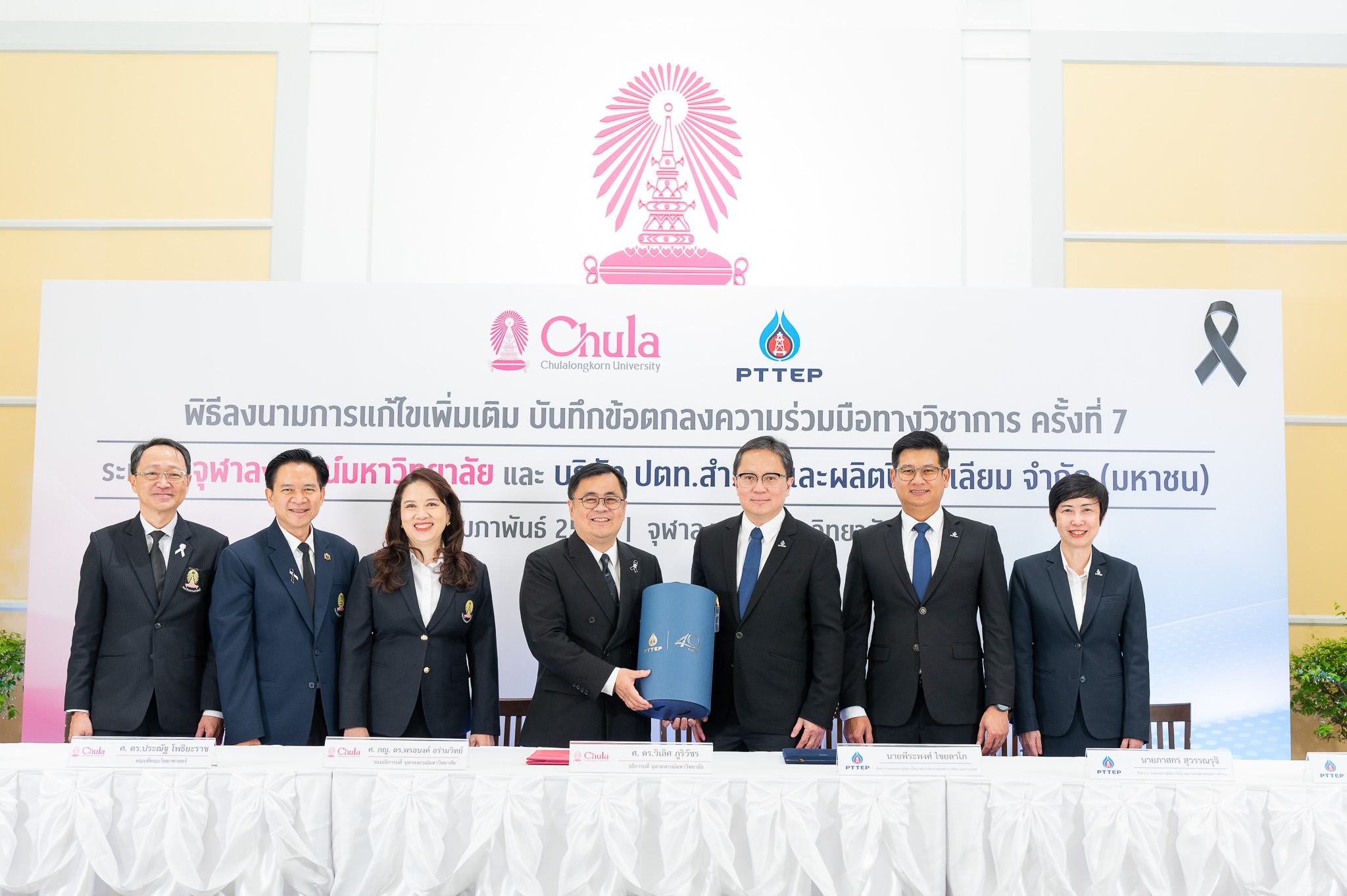 พิธีลงนามบันทึกข้อตกลงความร่วมมือทางวิชาการ ครั้งที่ 7 ระหว่างจุฬาลงกรณ์มหาวิทยาลัยและ ปตท.สผ. มีวัตถุประสงค์เพื่อส่งเสริมการพัฒนาบุคลากร การศึกษาและงานวิจัยเชิงลึกในสาขาธรณีศาสตร์ ธรณีฟิสิกส์ปิโตรเลียม วิศวกรรมศาสตร์ วิทยาศาสตร์และเทคโนโลยี สนับสนุนภารกิจด้านการสำรวจและผลิตปิโตรเลียม และเสริมสร้างความมั่นคงทางพลังงานให้กับประเทศ