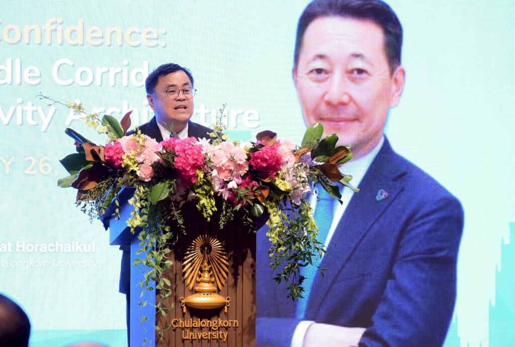 สถาบันเอเชียศึกษา จุฬาลงกรณ์มหาวิทยาลัย ร่วมกับหน่วยบริหารและจัดการทุนด้านการพัฒนาระดับพื้นที่ (บพท.) จัดการบรรยายพิเศษว่าด้วยกระบวนทัศน์ต่อเอเชียในอนาคตภายใต้โครงการ Asia Forward Series ครั้งที่ 7 ในหัวข้อ “From Corridors to Confidence: Central Asia, the Middle Corridor, and Asia’s New Connectivity Architecture” เมื่อพฤหัสบดีที่ 26 กุมภาพันธ์ 2569 ณ ห้อง 105 อาคารมหาจุฬาลงกรณ์ โดยมี ศ.ดร.วิเลิศ ภูริวัชร อธิการบดีจุฬาฯ เป็นประธานกล่าวต้อนรับ จากนั้นเป็นการแสดงปาฐกถาโดยเอกอัครราชทูต Kairat Sarybay เลขาธิการการประชุมว่าด้วยการส่งเสริมปฏิสัมพันธ์และมาตรการสร้างความไว้เนื้อเชื่อใจระหว่างประเทศในภูมิภาคเอเชีย (CICA) ดำเนินรายการโดย รศ.ดร.สุรัตน์ โหราชัยกุล สถาบันเอเชียศึกษา จุฬาฯ ต่อด้วยการเสวนาในหัวข้อ“การสร้างสันติภาพและความร่วมมือในโลกที่เปราะบาง” โดยวิทยากรผู้เชี่ยวชาญ งานในครั้งนี้ได้รับความสนใจจากคณาจารย์ คณะทูต และผู้สนใจเข้าร่วมรับฟังการบรรยายพิเศษอย่างคับคั่ง