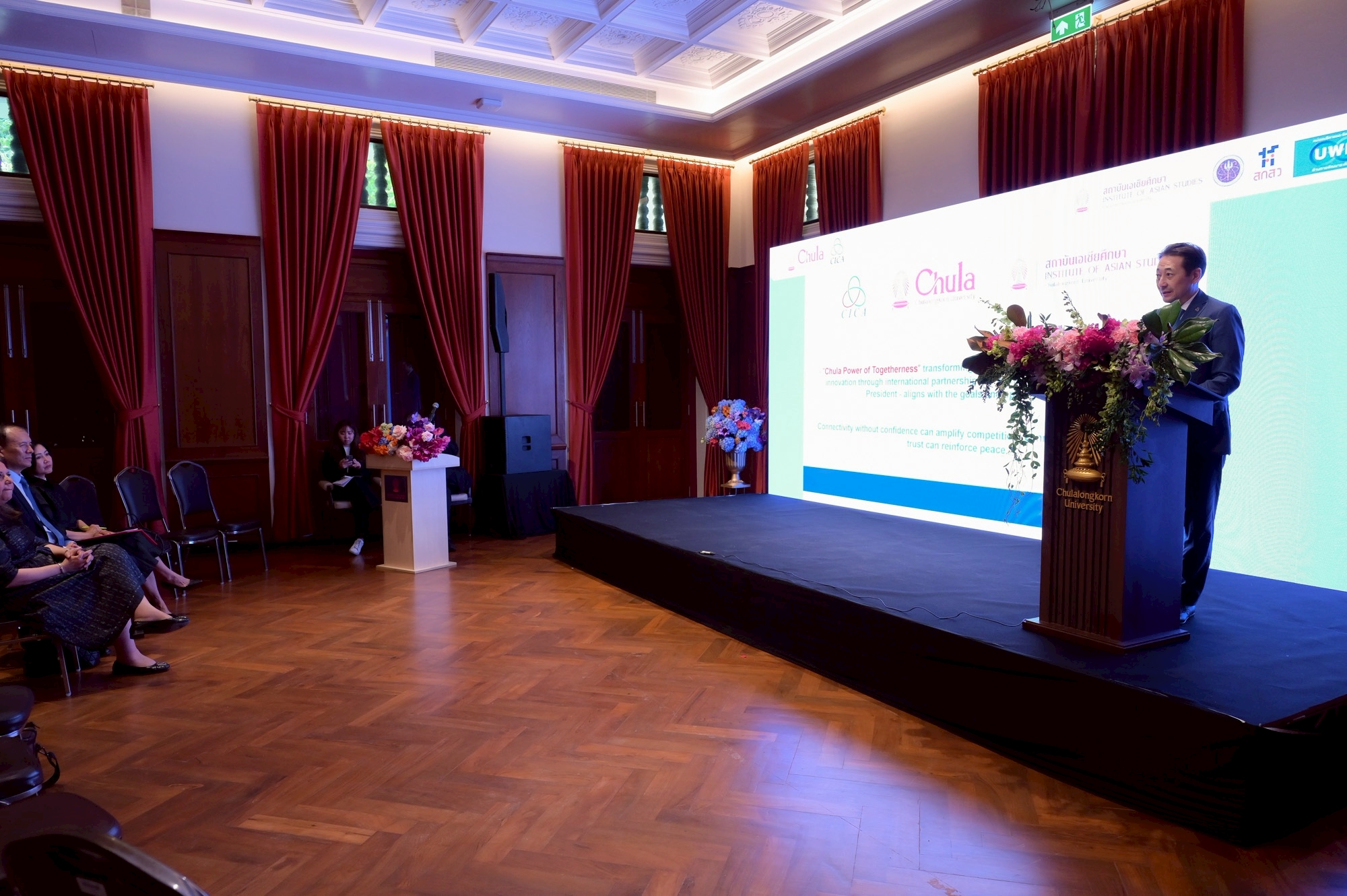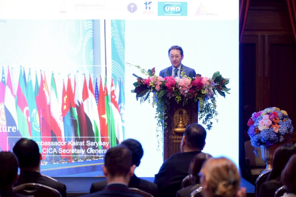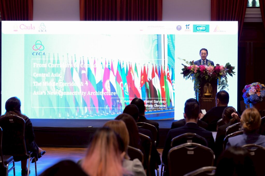 “งานในครั้งนี้ได้รับเกียรติจากเอกอัครราชทูต Kairat Sarybay เลขาธิการ CICA (Conference on Interaction and Confidence Building Measures in Asia) มาเป็นองค์ปาฐกพิเศษในหัวข้อ “From Connectivity to Confidence” ซึ่งเป็นการตอกย้ำบทบาทของสถาบันเอเชียศึกษา จุฬาฯ ในฐานะ “Think Tank” ที่ได้รับมอบหมายจากกระทรวงการต่างประเทศให้สร้างความเชื่อมโยงกับเอเชียกลาง โดย CICA เป็นกรอบความร่วมมือพหุภาคีที่มีสมาชิก 28 ประเทศ (รวมถึงประเทศไทย) มุ่งเน้นการสร้างความไว้เนื้อเชื่อใจเพื่อสันติภาพและความมั่นคง”