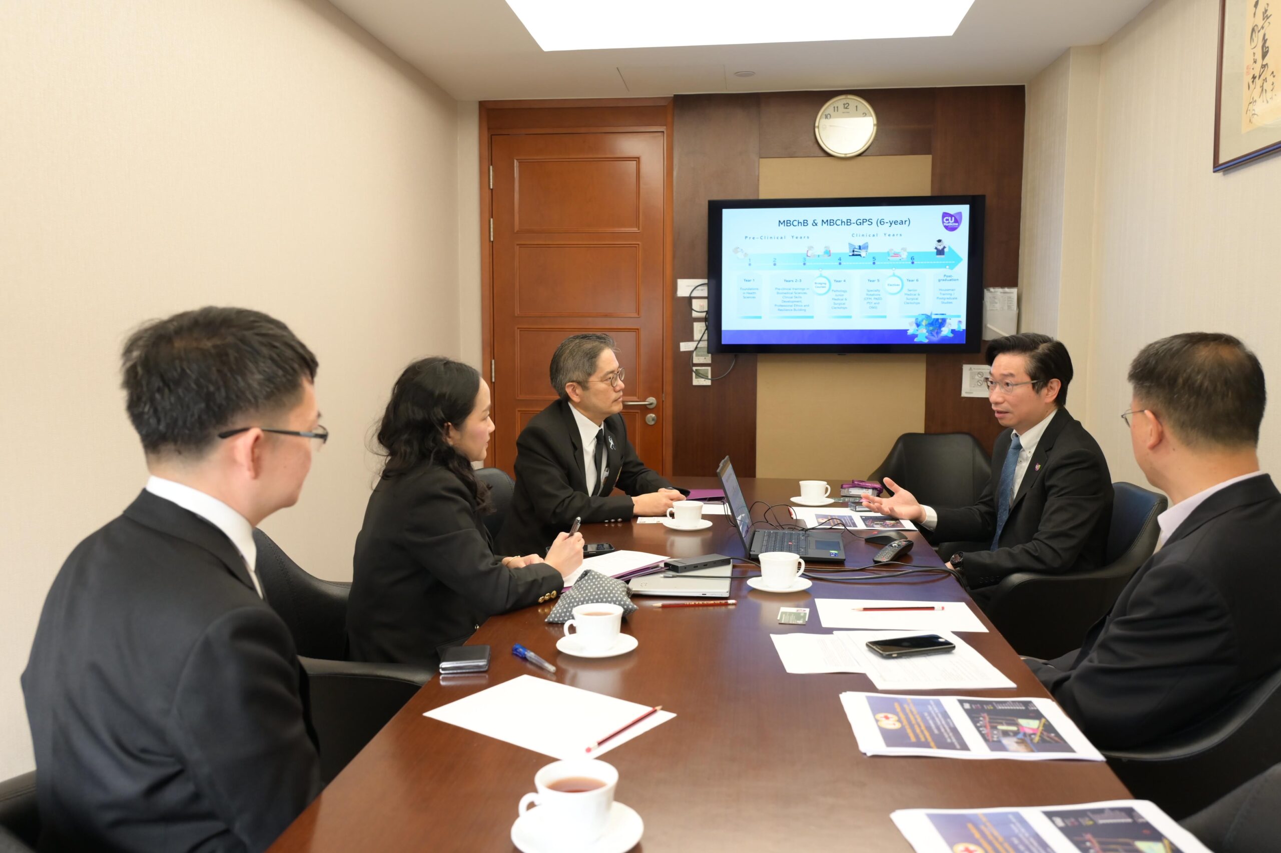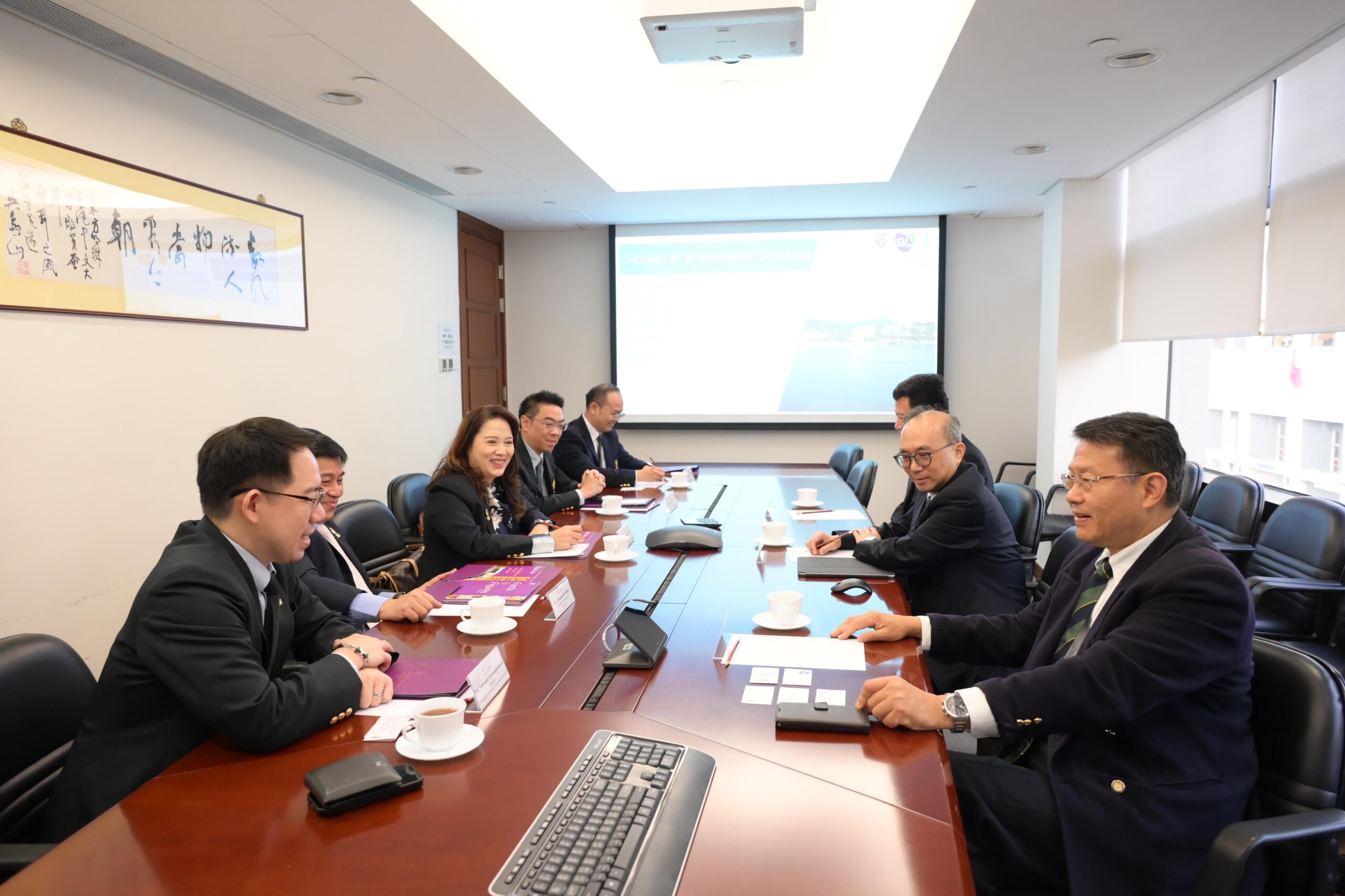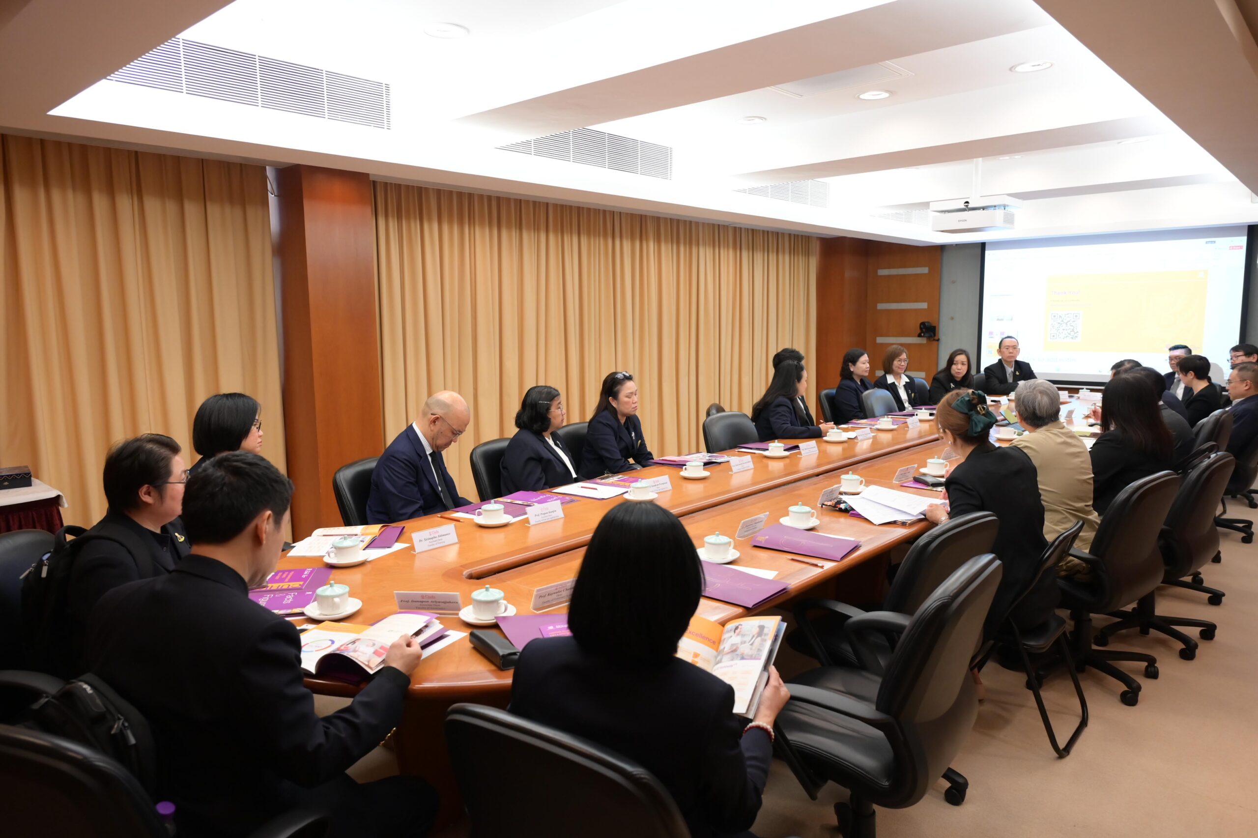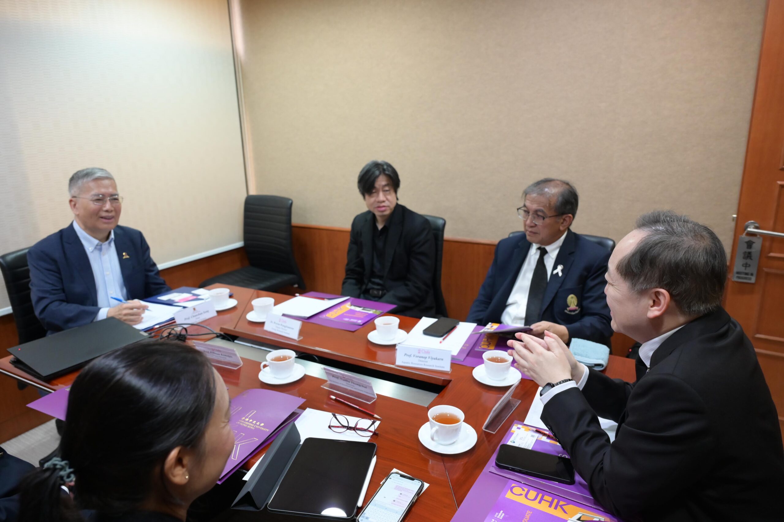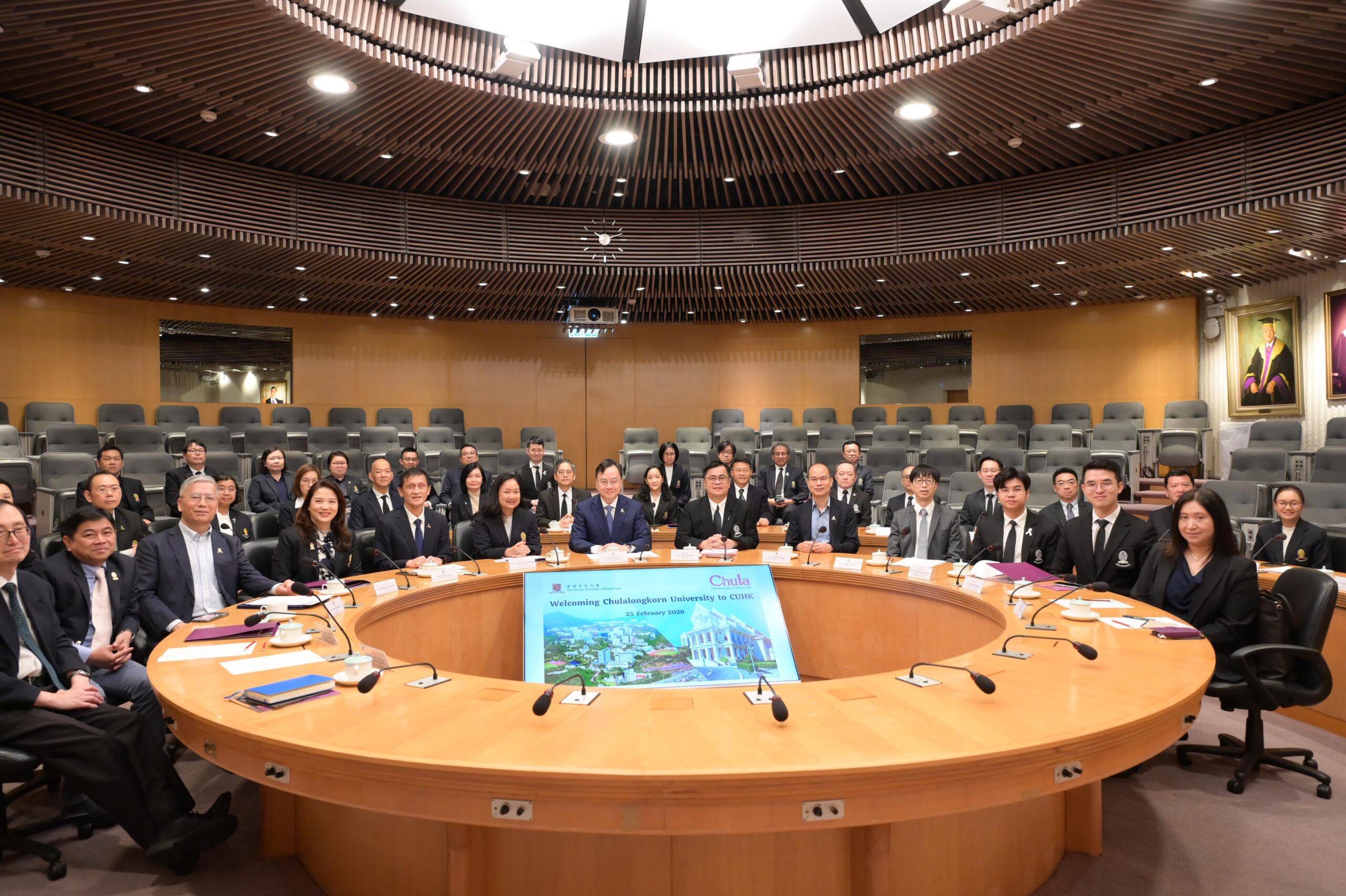 ศ.ดร.วิเลิศ ภูริวัชร อธิการบดีจุฬาลงกรณ์มหาวิทยาลัย พร้อมคณะผู้แทนมหาวิทยาลัย เข้าร่วมการประชุมหารือกับ Prof. Dennis Lo, Vice-Chancellor and President, The Chinese University of Hong Kong (CUHK) และผู้บริหารมหาวิทยาลัย เมื่อวันที่ 25 กุมภาพันธ์ 2569 ณ อาคารบริหาร CUHK เพื่อหารือแนวทางความร่วมมือระหว่างสองสถาบัน