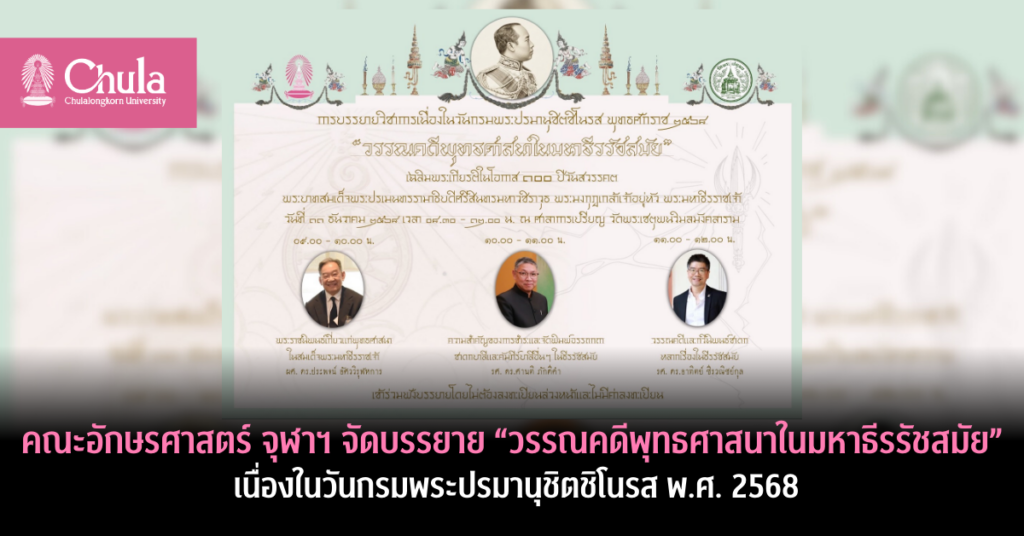 คณะอักษรศาสตร์ จุฬาฯ จัดบรรยาย “วรรณคดีพุทธศาสนาในมหาธีรรัชสมัย” เนื่องในวันกรมพระปรมานุชิตชิโนรส พ.ศ. 2568
