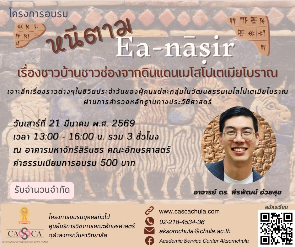 – “หนีตาม Ea-nāṣir: เรื่องชาวบ้านชาวช่องจากดินแดนเมโสโปเตเมียโบราณ” (On-site)เรียนรู้ชีวิตผู้คนในอารยธรรมโบราณผ่านเรื่องเล่าสุดเข้มข้น
