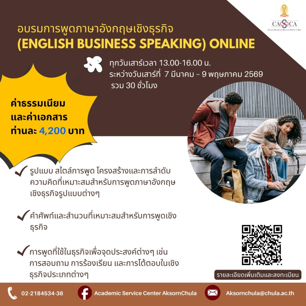 – การพูดภาษาอังกฤษเชิงธุรกิจ (English Business Speaking) (Online)เสริมความมั่นใจในการนำเสนอ ประชุม และเจรจาทางธุรกิจ