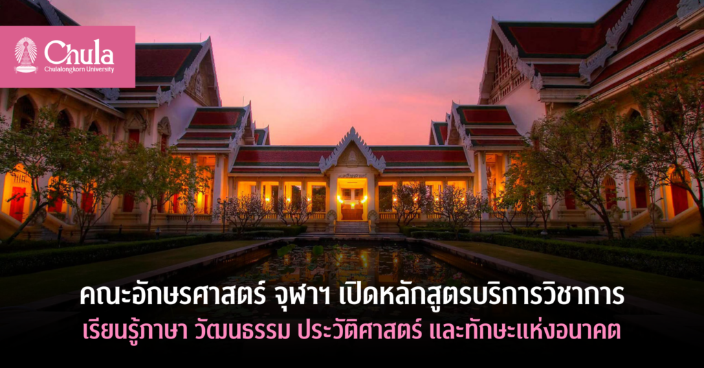 ศูนย์บริการวิชาการ คณะอักษรศาสตร์ จุฬาลงกรณ์มหาวิทยาลัยเปิดโครงการอบรมระยะสั้นหลากหลายหัวข้อ ครอบคลุมภาษา วัฒนธรรม ประวัติศาสตร์ และทักษะที่จำเป็นในโลกยุคใหม่เพื่อส่งเสริมการเรียนรู้ตลอดชีวิต สำหรับบุคคลทั่วไป นักเรียน นิสิตนักศึกษา และผู้สนใจ