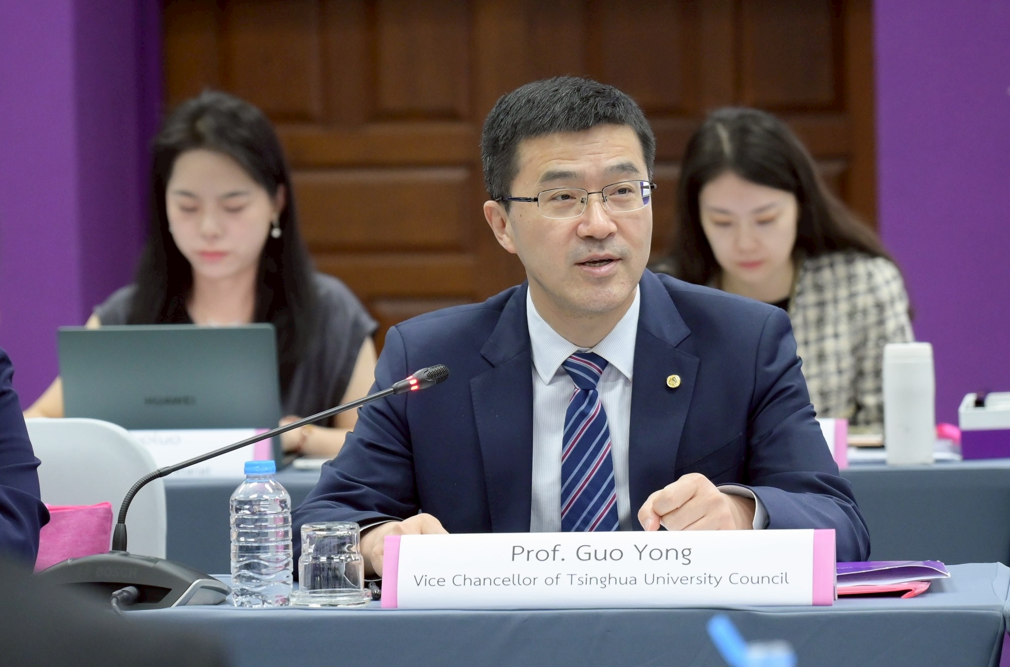Prof. Guo Yong, Vice Chancellor of the Tsinghua University Council กล่าวว่าการลงนามบันทึกความเข้าใจครั้งนี้เป็นรากฐานสำคัญของความร่วมมือระยะยาวระหว่างสองมหาวิทยาลัย ซึ่งมีความสัมพันธ์ใกล้ชิดมาอย่างต่อเนื่อง โดยเฉพาะการแลกเปลี่ยนผู้บริหารและบุคลากร ความร่วมมือครั้งนี้จะเปิดโอกาสให้เกิดการแลกเปลี่ยนทางวิชาการ การบูรณาการทรัพยากรดิจิทัล งานวิจัยเชิงนวัตกรรม และการประยุกต์ใช้ AI อย่างมีความรับผิดชอบ พร้อมทั้งเชิญคณะจากจุฬาฯ เยือนมหาวิทยาลัยชิงหัวในโอกาสต่อไป