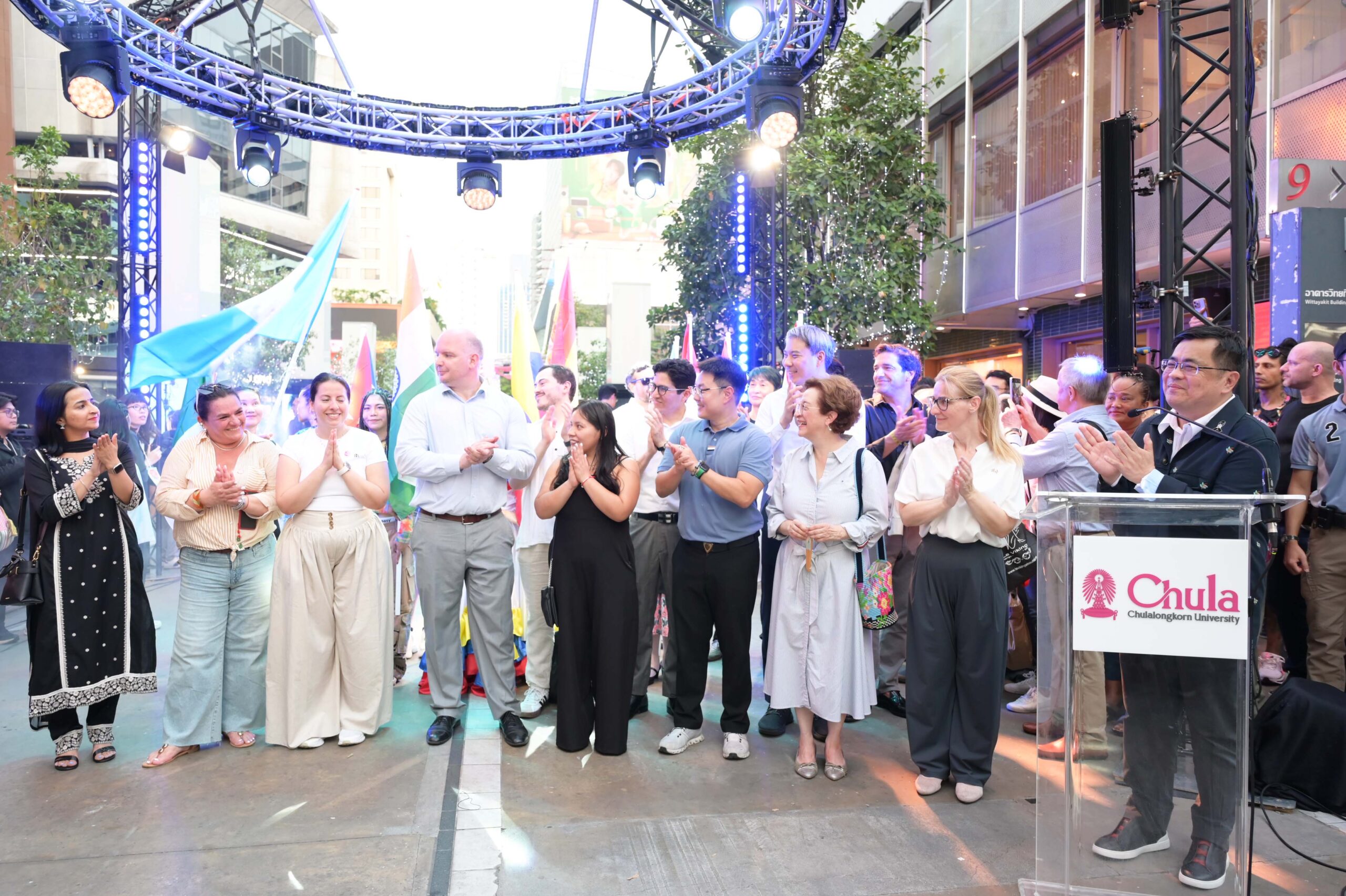 เมื่อวันเสาร์ที่ 7 มีนาคม 2569 ศ.ดร.วิเลิศ ภูริวัชร อธิการบดีจุฬาลงกรณ์มหาวิทยาลัย เป็นประธานในพิธีเปิดงาน “Siam Square World Dance Carnival 2026” ณ Siam Square Walking Street โดยมีผู้บริหารมหาวิทยาลัย ผู้บริหารสำนักงานจัดการทรัพย์สินจุฬาฯ พร้อมด้วยเอกอัครราชทูตและผู้แทนจากหลายประเทศเข้าร่วมงาน ท่ามกลางบรรยากาศอันคึกคักของนักท่องเที่ยวและประชาชนทั้งชาวไทยและชาวต่างชาติ