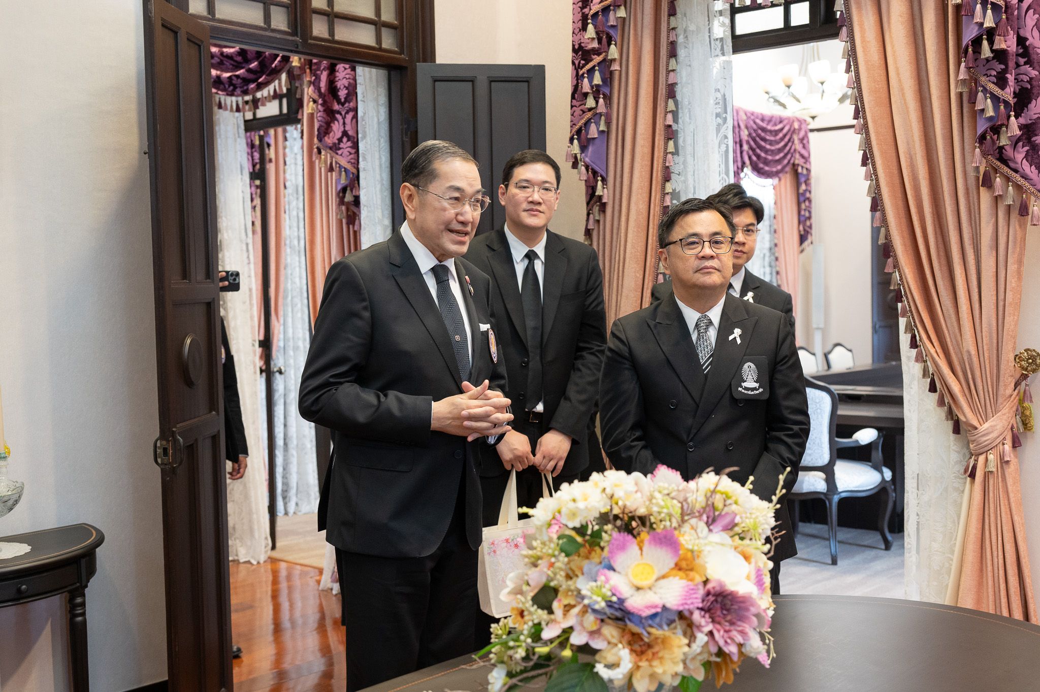 โอกาสนี้ คณะกรรมการมูลนิธิฯ ได้นำคณะผู้บริหารจากจุฬาลงกรณ์มหาวิทยาลัยเข้าเยี่ยมชมความงดงามของสถาปัตยกรรมอาคารมหินทรเดชานุวัตน์ พร้อมทั้งศึกษาการดำเนินงานในห้องปฏิบัติการเฝ้าระวังภัย (War Room) และส่วนงานต่าง ๆ ภายในสำนักงานมูลนิธิฯ เพื่อแลกเปลี่ยนเรียนรู้แนวทางการบริหารจัดการภัยพิบัติอย่างครบวงจรและยั่งยืน