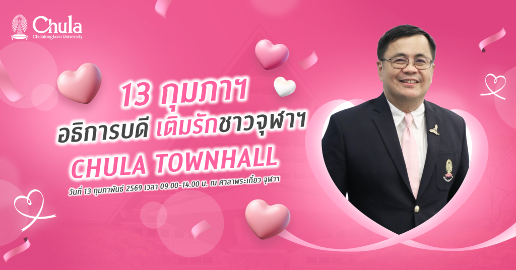 ขอเชิญบุคลากรจุฬาฯ ร่วมงาน “Chula Townhall” อธิการบดี เติมรักชาวจุฬาฯ 13 กุมภาพันธ์ 2569 ที่ศาลาพระเกี้ยว