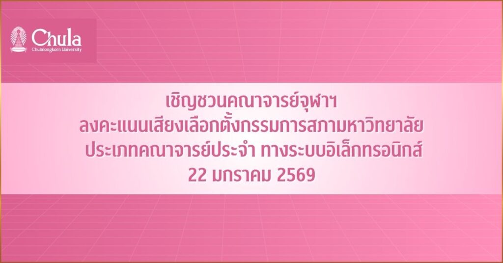 เชิญชวนคณาจารย์จุฬาฯ ลงคะแนนเสียงเลือกตั้งกรรมการสภามหาวิทยาลัย ประเภทคณาจารย์ประจำ ทางระบบอิเล็กทรอนิกส์ 22 มกราคม 2569