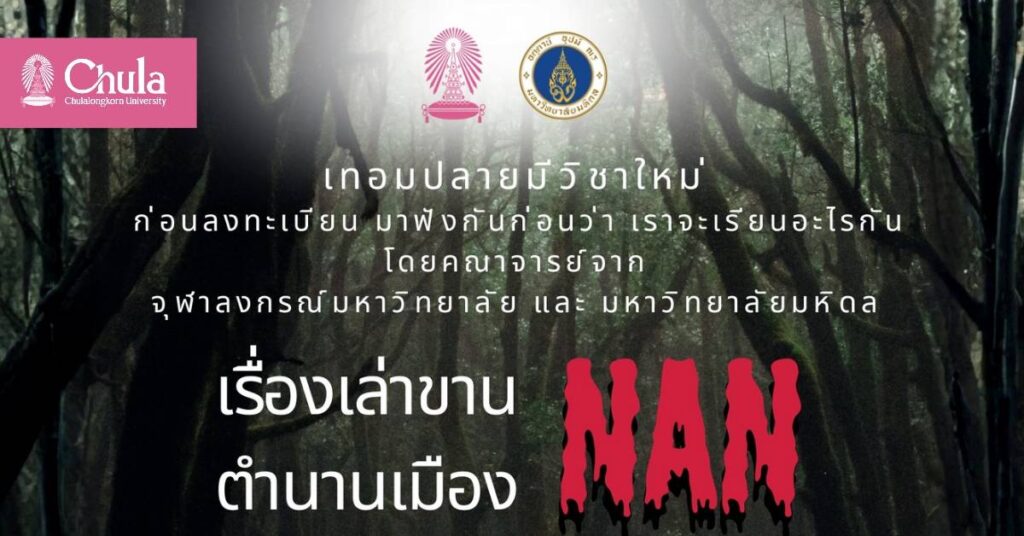 จุฬาฯ ขอเชิญนิสิตร่วมกิจกรรม “เรียนเล่าขาน ตำนานเมืองน่าน” ซึ่งเป็นส่วนหนึ่งของรายวิชาศึกษาทั่วไป ชุมชนสัมพันธ์และความยั่งยืนทางวัฒนธรรม