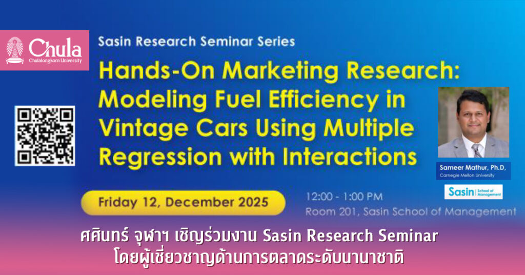 ศศินทร์ จุฬาฯ เชิญร่วมงาน Sasin Research Seminar โดยผู้เชี่ยวชาญด้านการตลาดระดับนานาชาติ