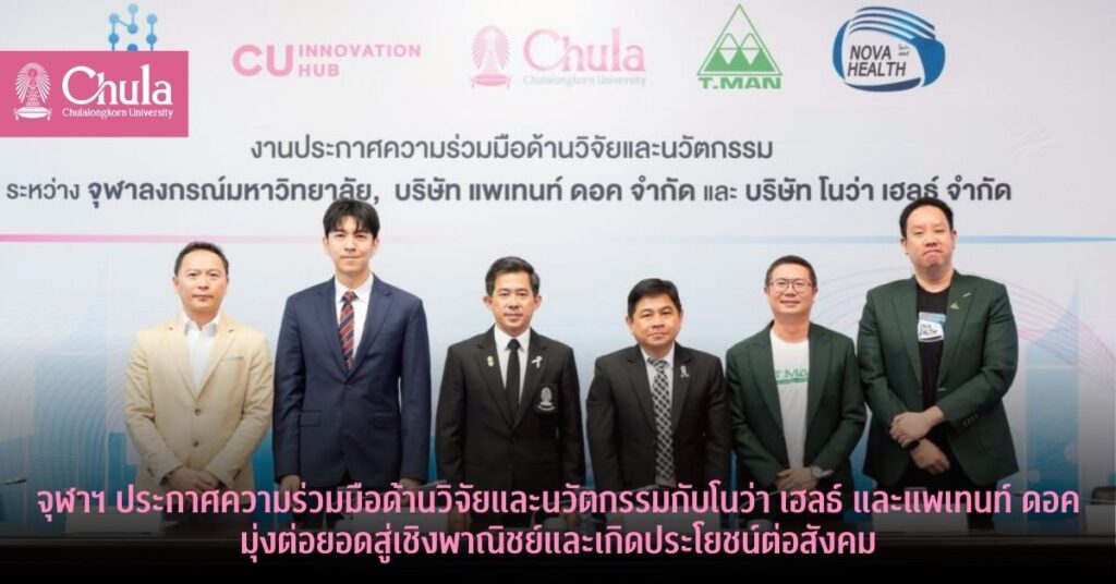 จุฬาฯ ประกาศความร่วมมือด้านวิจัยและนวัตกรรมกับโนว่า เฮลธ์ และแพเทนท์ ดอค มุ่งต่อยอดสู่เชิงพาณิชย์และเกิดประโยชน์ต่อสังคม