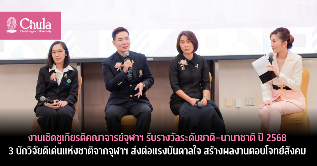 งานเชิดชูเกียรติคณาจารย์จุฬาฯ รับรางวัลระดับชาติ–นานาชาติ ปี 2568 สามนักวิจัยดีเด่นแห่งชาติจากจุฬาฯ ส่งต่อแรงบันดาลใจ สร้างผลงานวิจัยตอบโจทย์สังคม