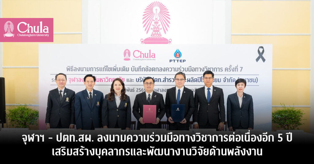 จุฬาฯ – ปตท.สผ. ลงนามความร่วมมือทางวิชาการต่อเนื่องอีก 5 ปีเสริมสร้างบุคลากรและพัฒนางานวิจัยด้านพลังงาน
