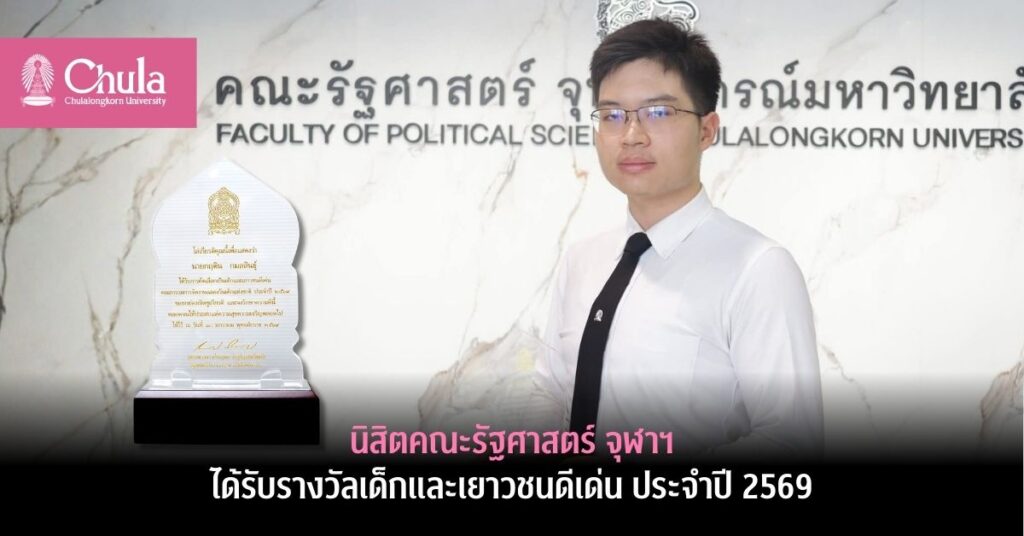 กฤติน กมลสินธุ์ นิสิตคณะรัฐศาสตร์ จุฬาฯ ได้รับรางวัลเด็กและเยาวชนดีเด่นที่นำชื่อเสียงมาสู่ประเทศชาติ ประจำปี 2569