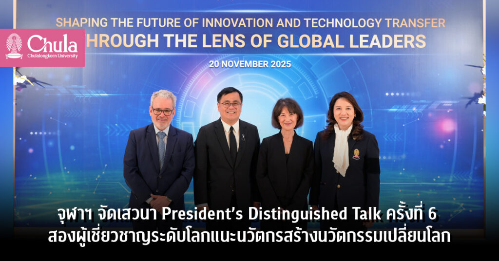 จุฬาฯ จัดเสวนา President’s Distinguished Talk ครั้งที่ 6 สองผู้เชี่ยวชาญระดับโลกแนะนวัตกรสร้างนวัตกรรมเปลี่ยนโลก