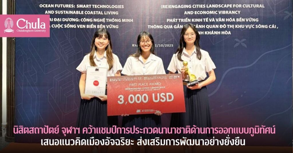 นิสิตสถาปัตย์ จุฬาฯ คว้าแชมป์การประกวดออกแบบพื้นที่เสนอแนวคิดเมืองอัจฉริยะ ส่งเสริมการพัฒนาอย่างยั่งยืน