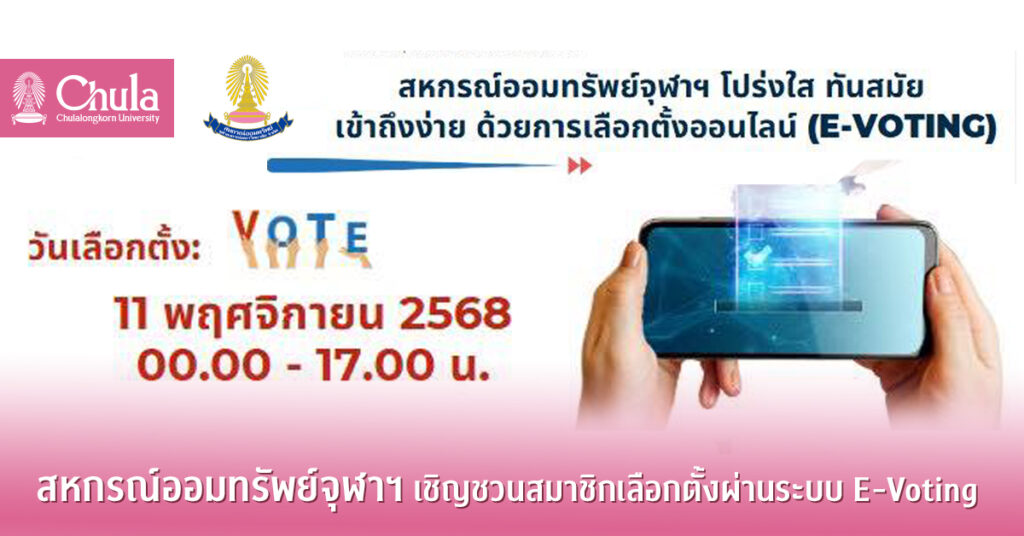 สหกรณ์ออมทรัพย์จุฬาฯ เชิญชวนสมาชิกเลือกตั้งคณะกรรมการและผู้ประสานงานประจำหน่วยผ่านระบบ E-Voting