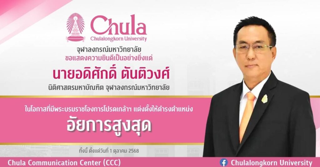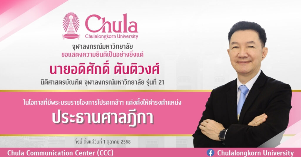นายอดิศักดิ์ ตันติวงศ์ นิสิตเก่าคณะนิติศาสตร์ จุฬาฯได้รับโปรดเกล้าฯ แต่งตั้งให้ดำรงตำแหน่งประธานศาลฎีกา