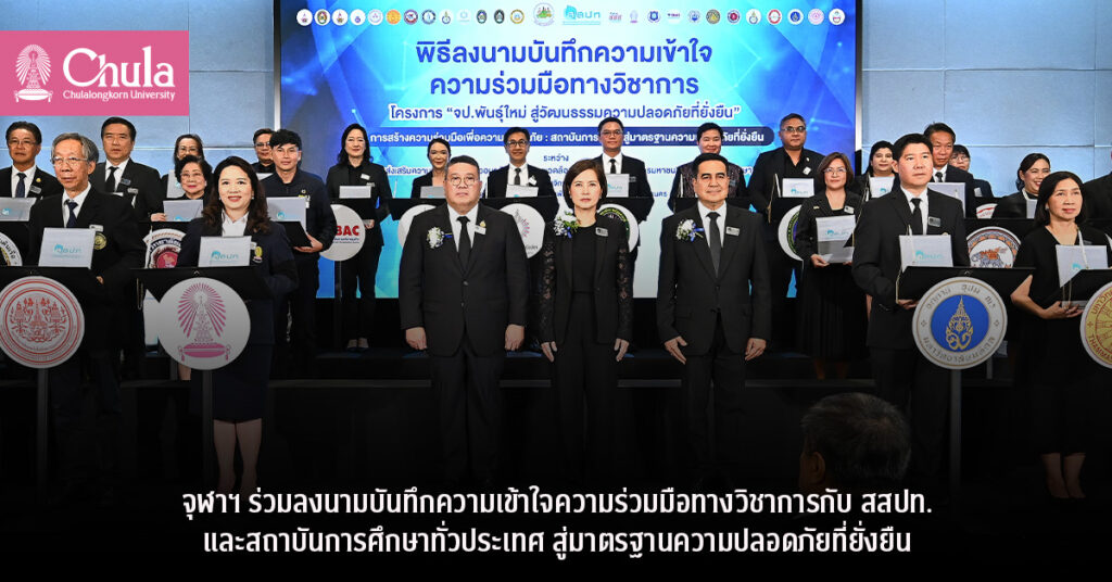 จุฬาฯ ร่วมลงนามบันทึกความเข้าใจความร่วมมือทางวิชาการกับ สสปท. และสถาบันการศึกษาทั่วประเทศ สู่มาตรฐานความปลอดภัยที่ยั่งยืน