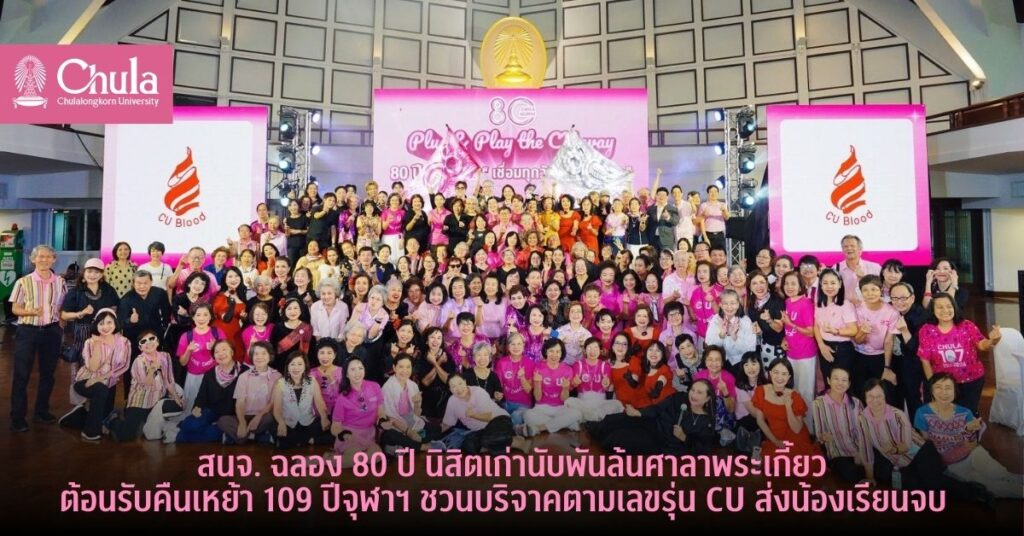 สนจ. ฉลอง 80 ปี นิสิตเก่านับพันแสดงพลังล้นศาลาพระเกี้ยว ต้อนรับคืนเหย้า 109 ปีจุฬาฯ ชวนบริจาคตามเลขรุ่น CU ส่งน้องเรียนจบ
