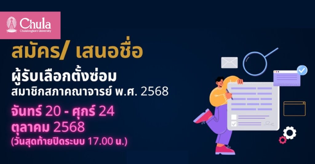 เชิญชวนคณาจารย์จุฬาฯ รับสมัครหรือเสนอชื่อผู้สมัครรับเลือกตั้งซ่อม สมาชิกสภาคณาจารย์ จุฬาฯ พ.ศ. 2568 แทนตำแหน่งที่ว่าง