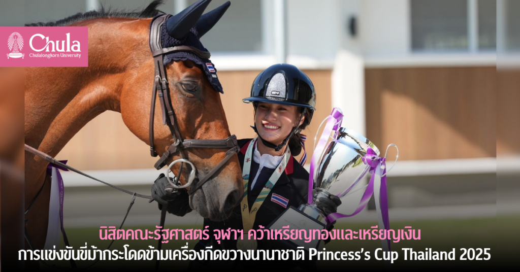 นิสิตคณะรัฐศาสตร์ จุฬาฯ คว้าเหรียญทองและเหรียญเงินการแข่งขันขี่ม้ากระโดดข้ามเครื่องกีดขวางนานาชาติ Princess’s Cup Thailand 2025